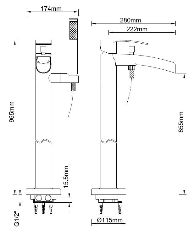 Uitloop hoogte: 855mm