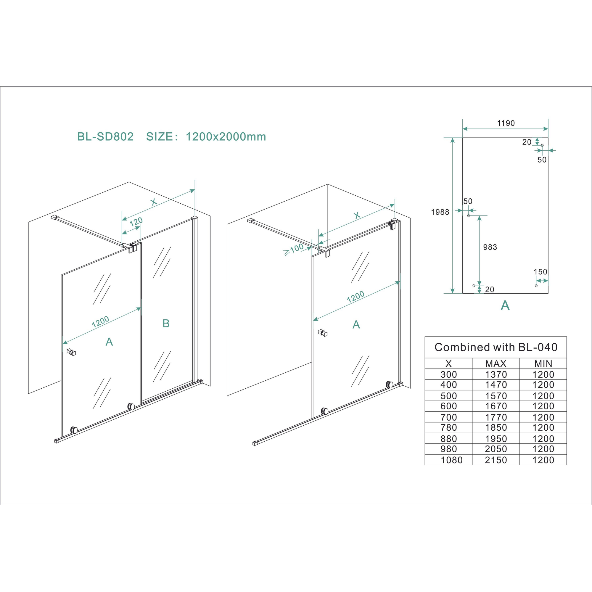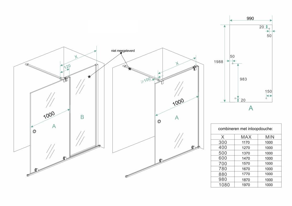 Een schuifdeur van 1000mm die gecombineerd kan worden met de inloopdouches 10mm NANO van Korver Holland