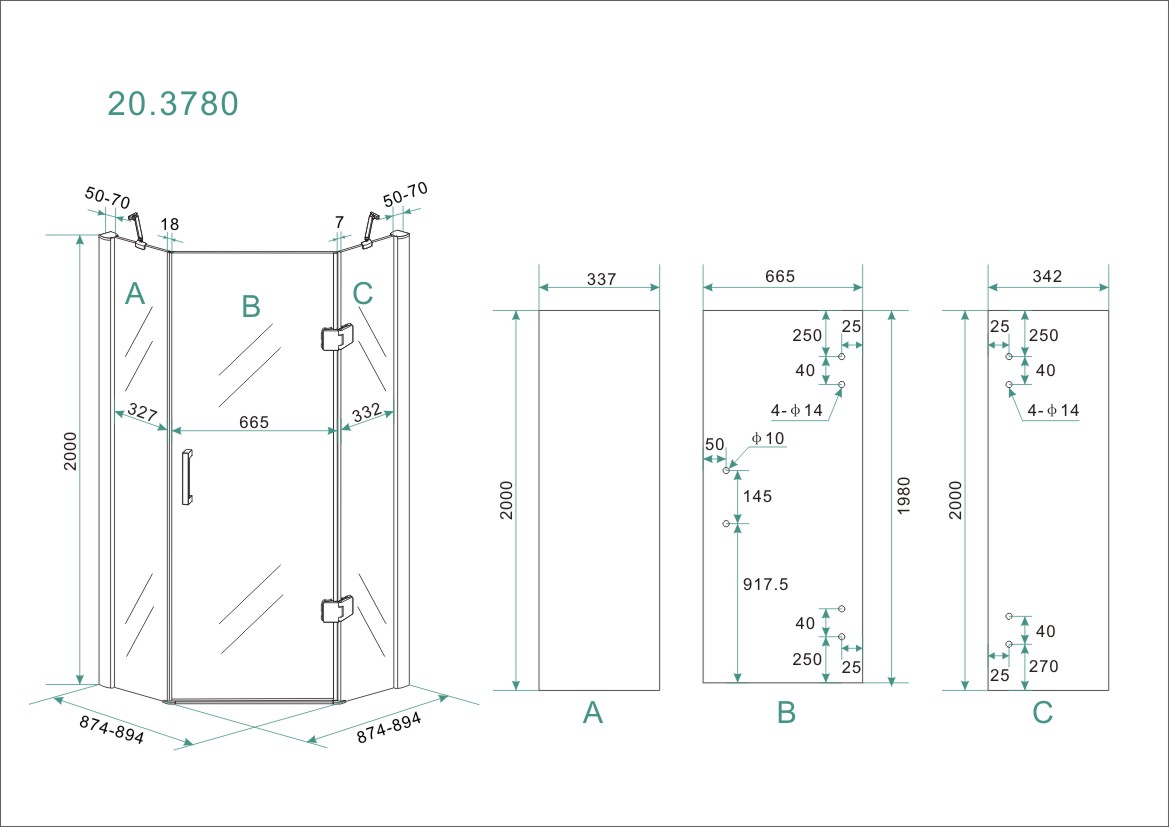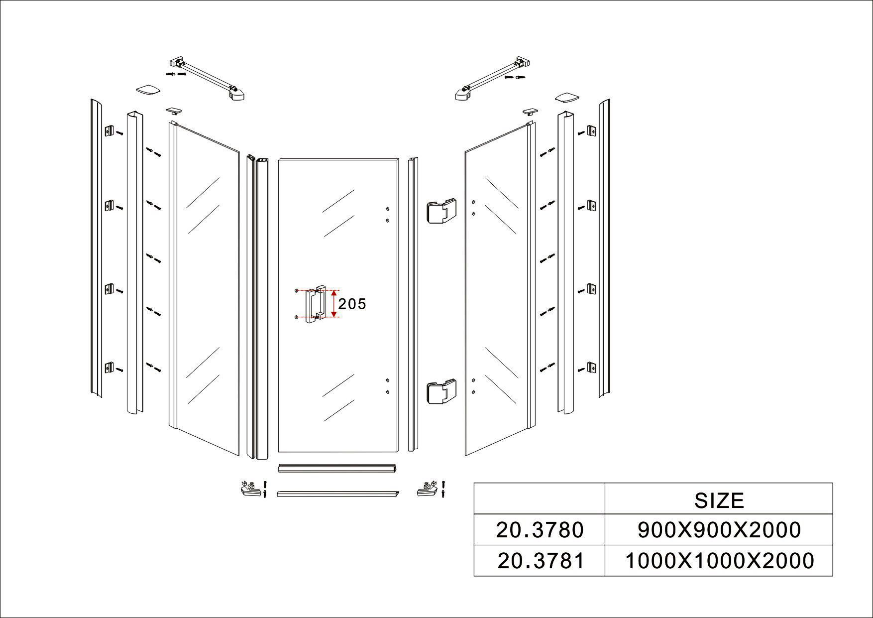 Wiesbaden Pento cabine met 1 draaideur 900 x 900 x 2000 x 8 mm nano helder glas/chroom