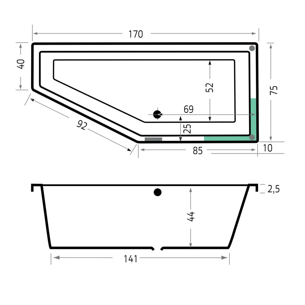 Het Xenz Society Compact ligbad biedt een comfortabele en ontspannende badervaring. De ruime afmetingen van 170x75cm zorgen voor voldoende bewegingsruimte, terwijl de hoogwaardige acrylconstructie duurzaamheid en warmte-isolatie garandeert. De hoekopstelling aan de rechterkant creëert een gezellige en intieme sfeer, perfect om tot rust te komen na een lange dag.