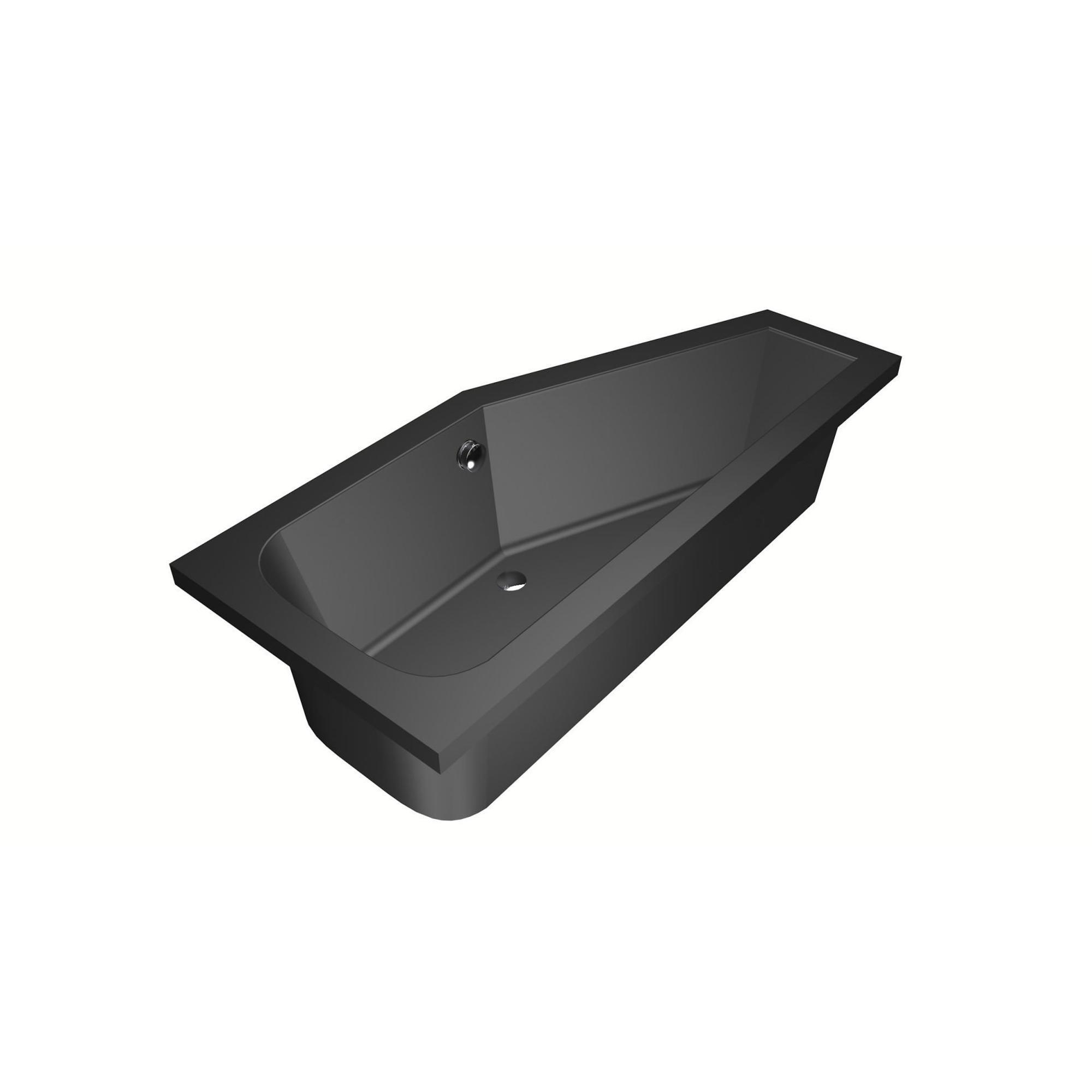 Xenz Lagoon compact ligbad - 170x75cm - met overloop - zonder afvoer - Hoekopstelling rechts - Acryl Ebony mat