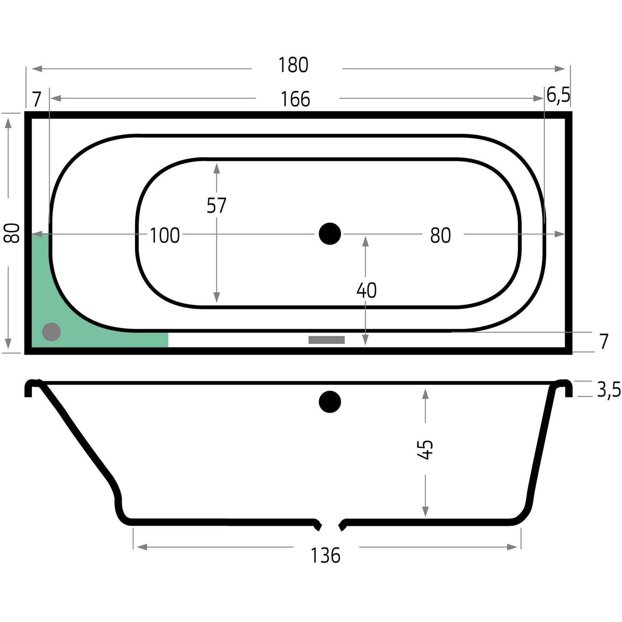 Xenz Aruba ligbad - 180x80cm - met overloop - zonder afvoer - Acryl Cement Mat