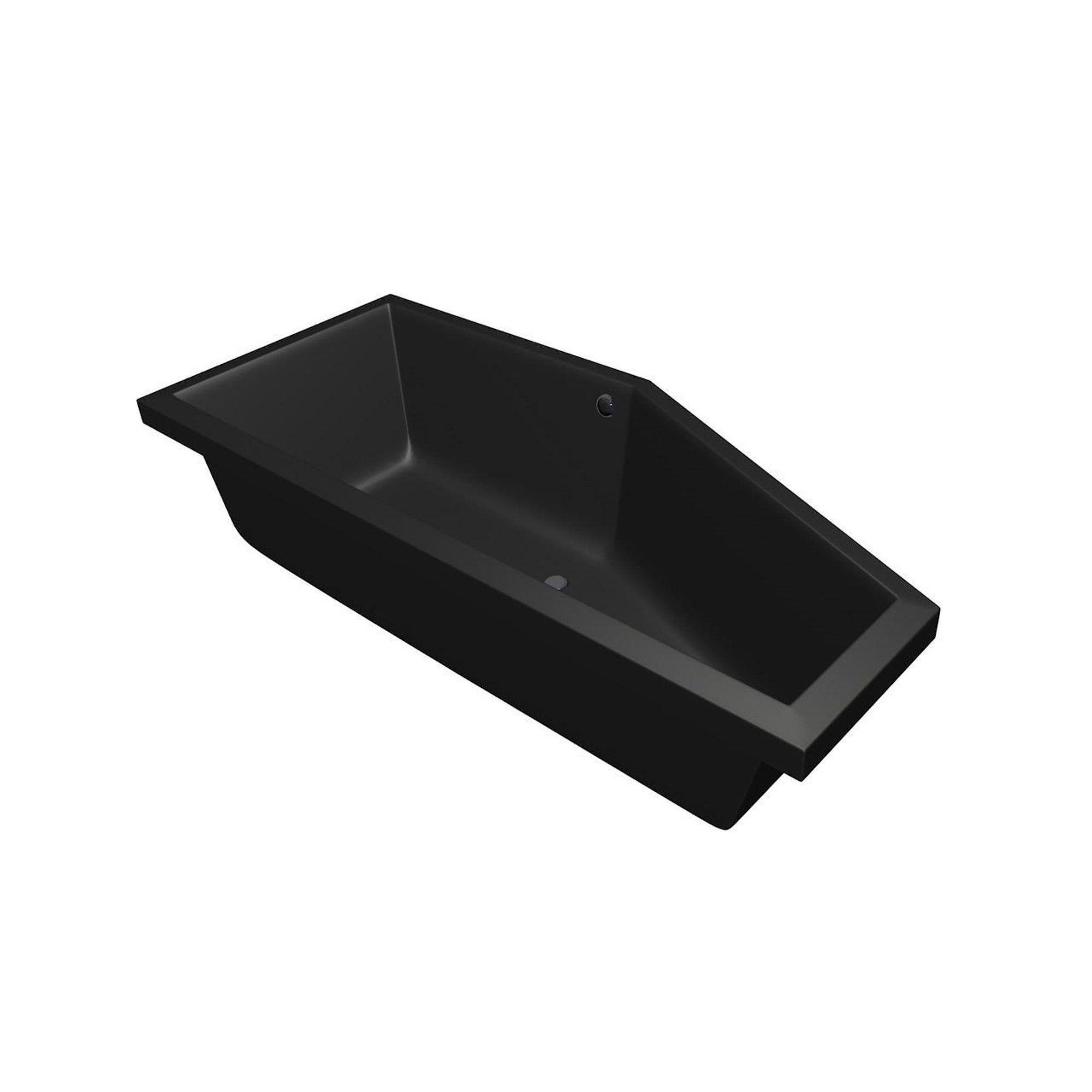 Xenz Society Compact ligbad - 180x80cm - met overloop - zonder afvoer - Hoekopstelling rechts - Acryl Ebony mat