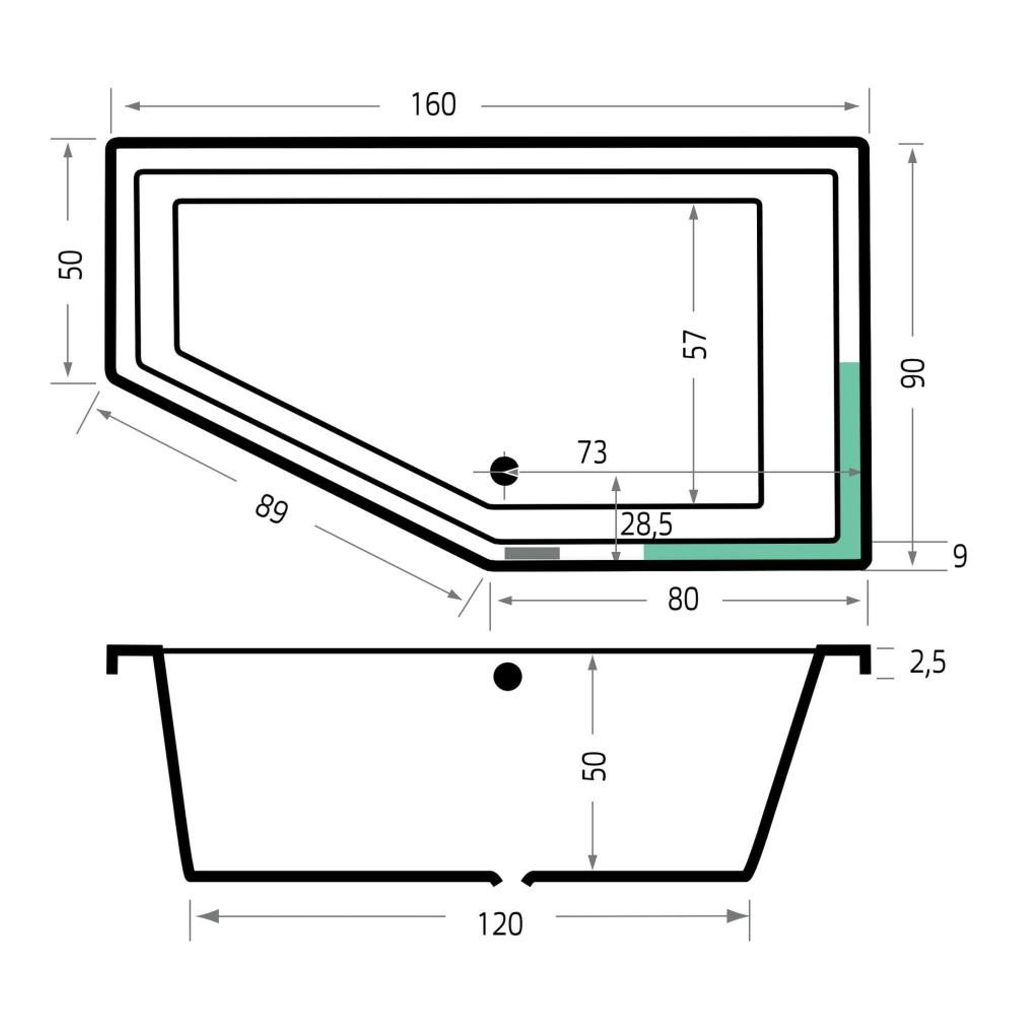 Inbouwbad Xenz Society hoek is een vijfhoekig ligbad. De afvoer- en overloopcombinatie zit in het midden, wat dit een geschikt ligbad voor twee personen maakt. Dankzij de afgeschuinde vormgeving bespaart het veel ruimte in de badkamer. Het bad onderscheidt zich door zijn strakke vormen en maximale diepte van andere inbouwbaden