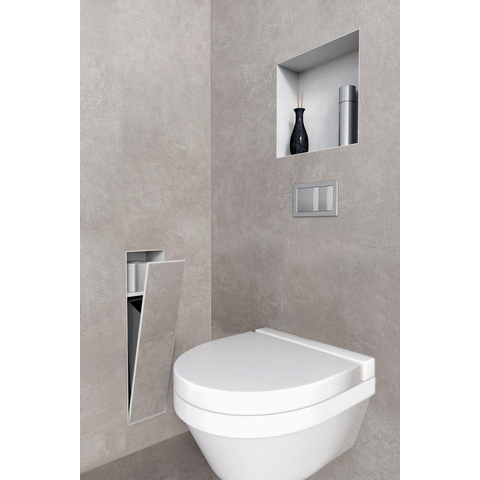 Het Looox Closed afval- / opbergvak straalt stijl en verfijning uit. Het roestvrijstalen materiaal voegt een moderne touch toe aan je badkamer, terwijl het betegelbare ontwerp ervoor zorgt dat het naadloos opgaat in je tegelwand. De strakke lijnen en minimalistische uitstraling maken dit product een elegante toevoeging aan elke badkamer, ongeacht de inrichting.
