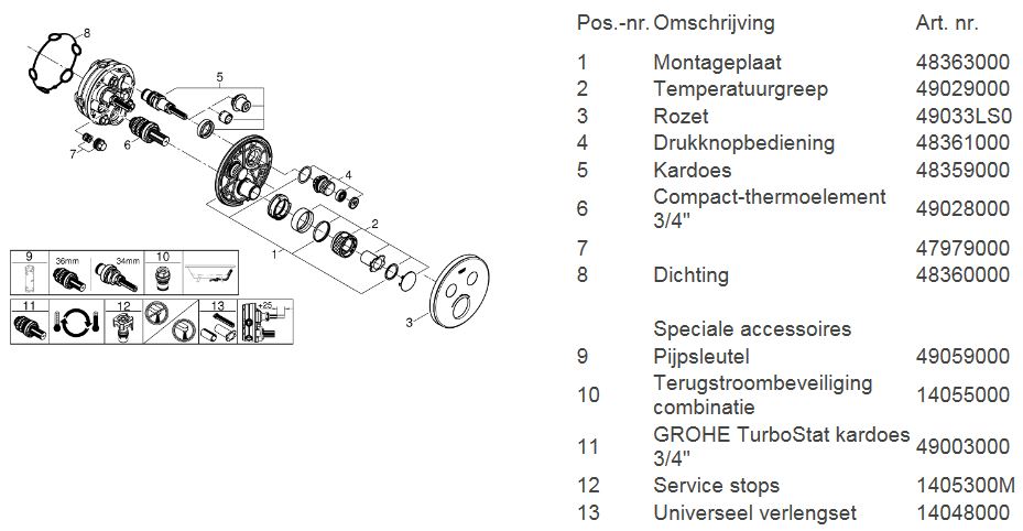 GROHE SafeStop Plus optionele temperatuurbegrenzer bij 43°C of 46°C inbegrepen