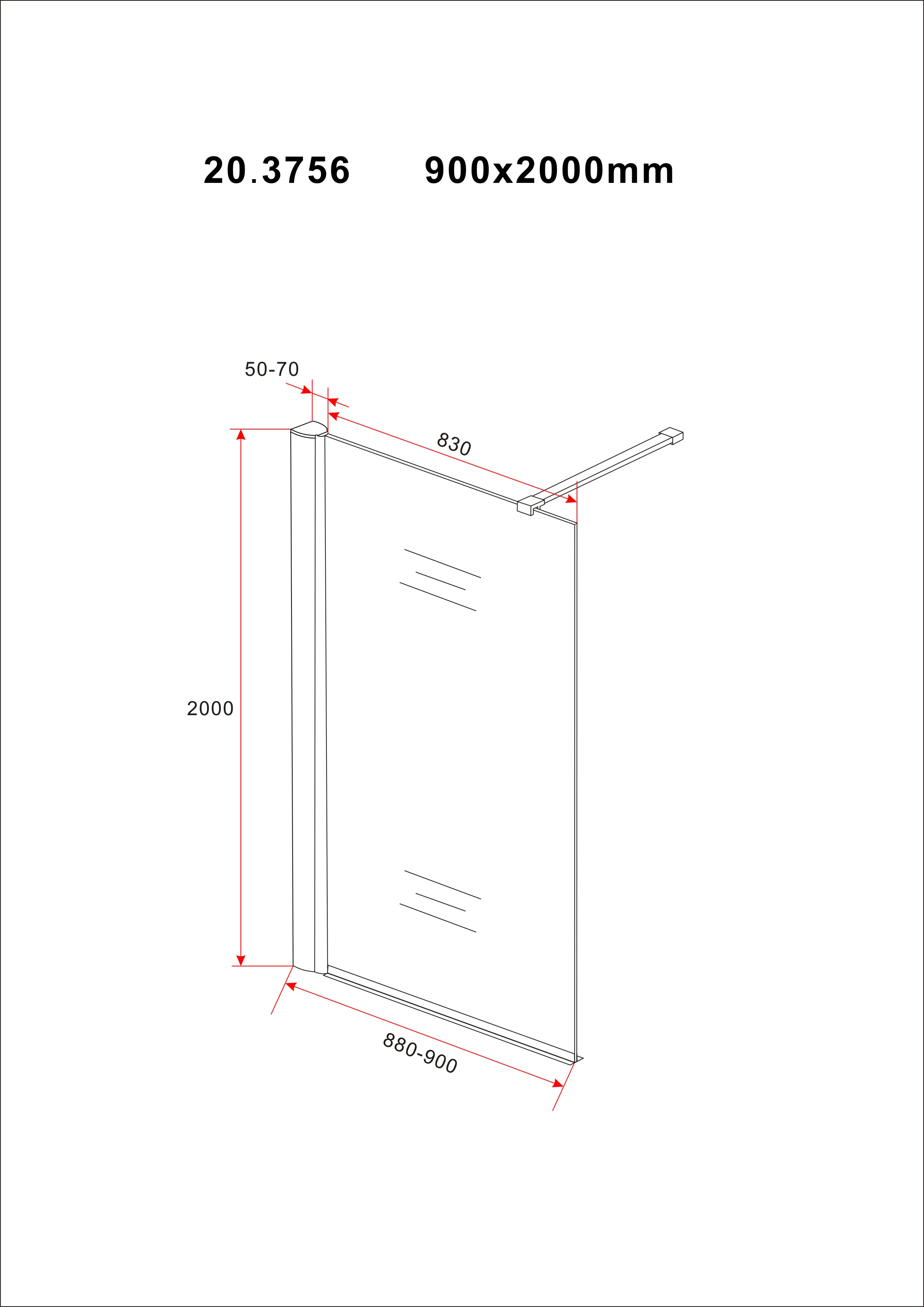 Wiesbaden Graffic inloopdouche 900 x 2000 x 10 mm nano safety glass folie helder glas/chroom