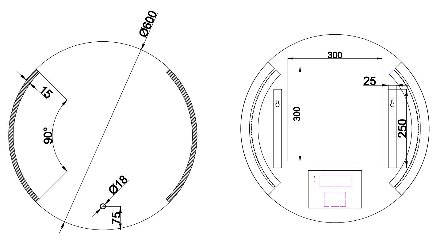 Voorzien van één spiegelverwarmings-matje van 250x350mm ter voorkoming van condensvorming
