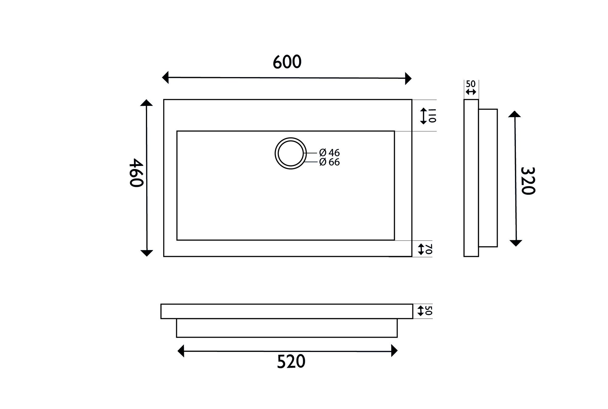 Wiesbaden Raw wastafel enkel zonder kraangat 60x46x5 cm hardsteen gezoet