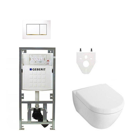 Villeroy Boch Subway 2.0 DirectFlush Toiletset - softclose - geberit reservoir - bedieningsplaat wit goud sigma30 - wit
