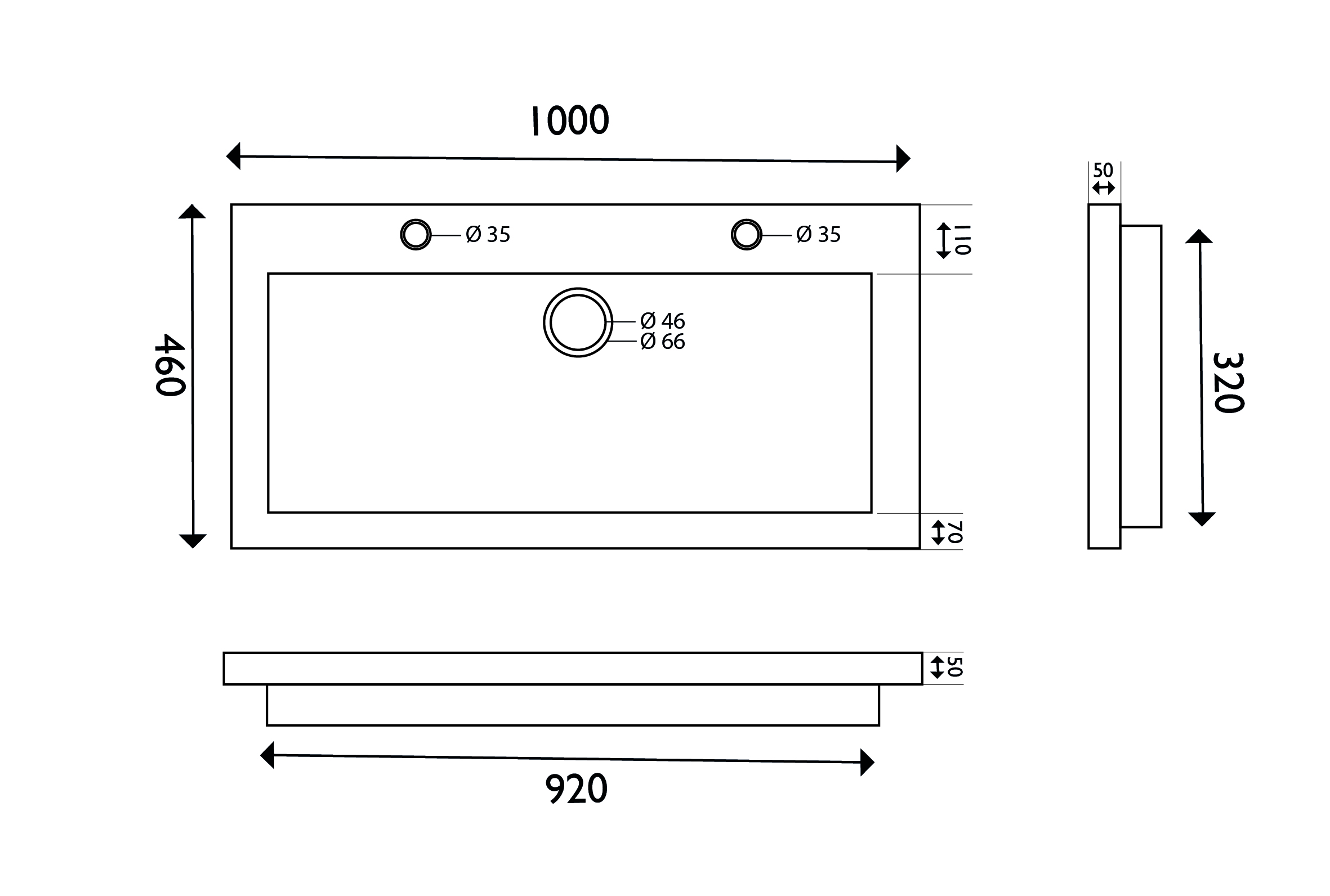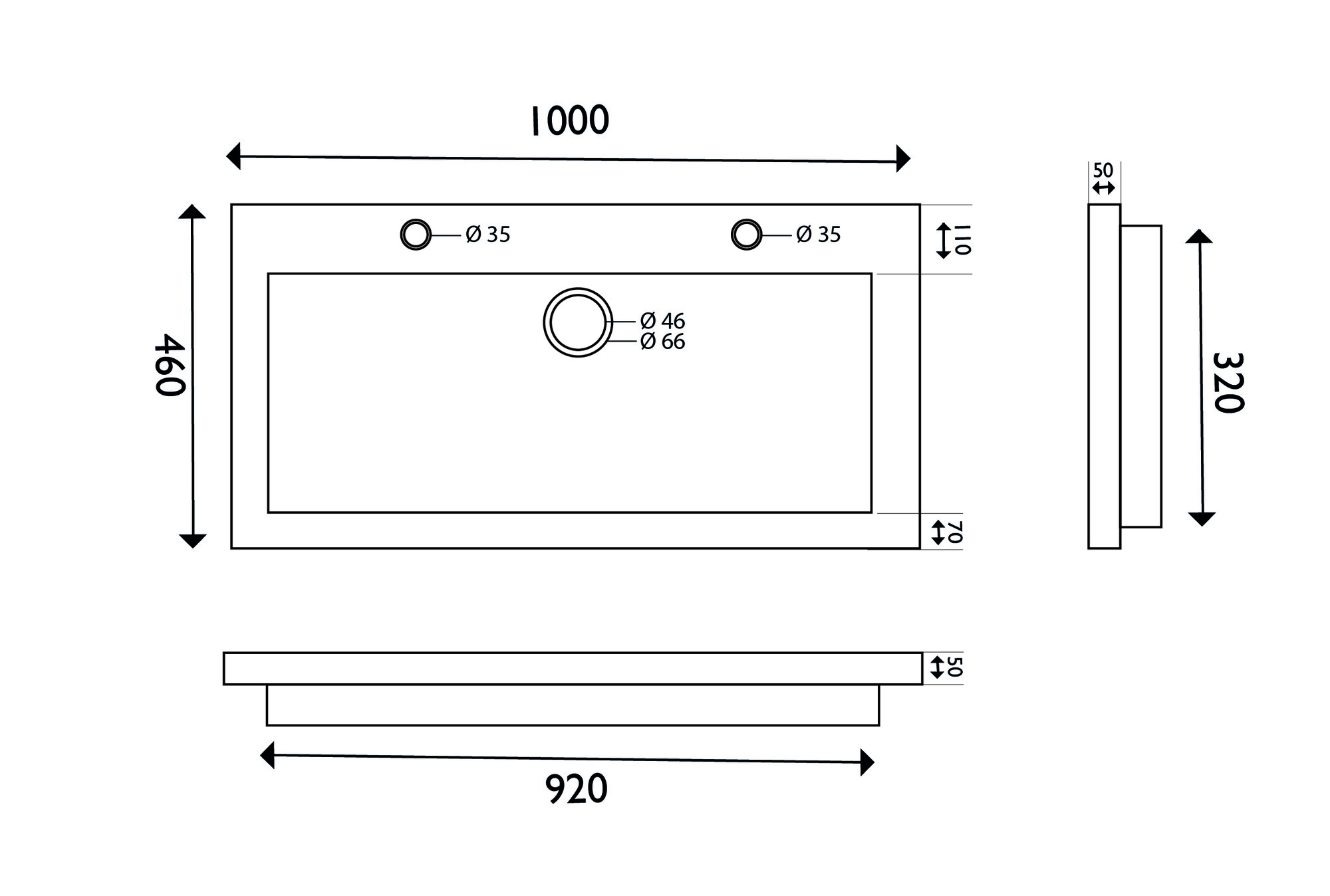 Wiesbaden Raw wastafel enkel met 2 kraangaten 100x46x5 cm hardsteen gezoet