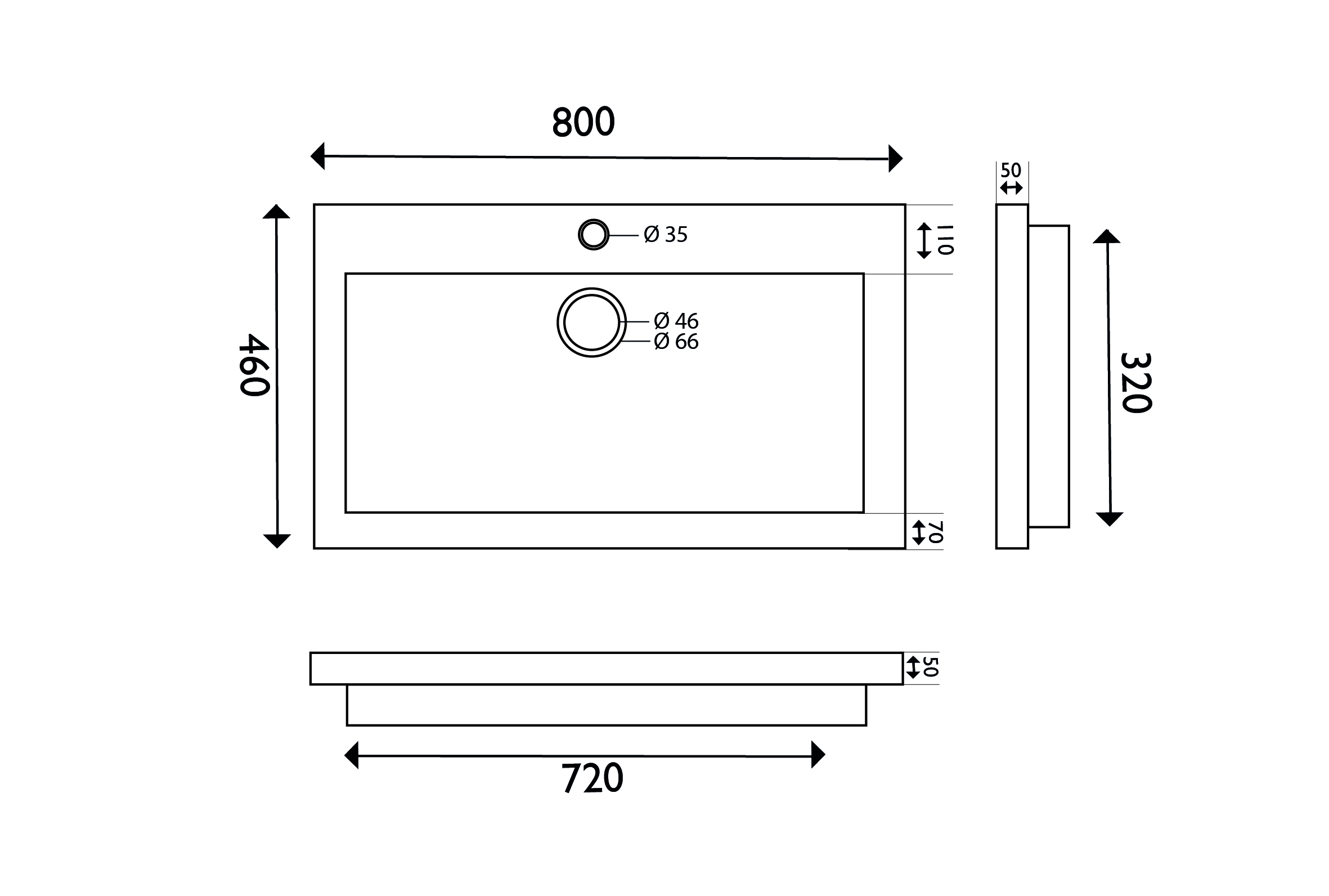 Wiesbaden Raw wastafel enkel met 1 kraangat 80x46x5 cm hardsteen gezoet