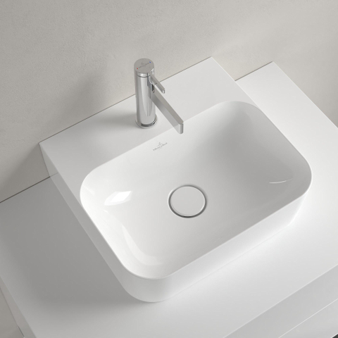 Villeroy & Boch Finion fontein onderzijde geslepen 1 kraangat 43x39cm ceramic+ zonder overloop wit