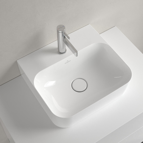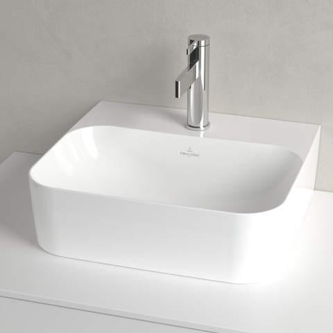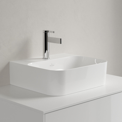 Villeroy & Boch Finion fontein onderzijde geslepen 1 kraangat 43x39cm ceramic+ met verdekte overloop wit