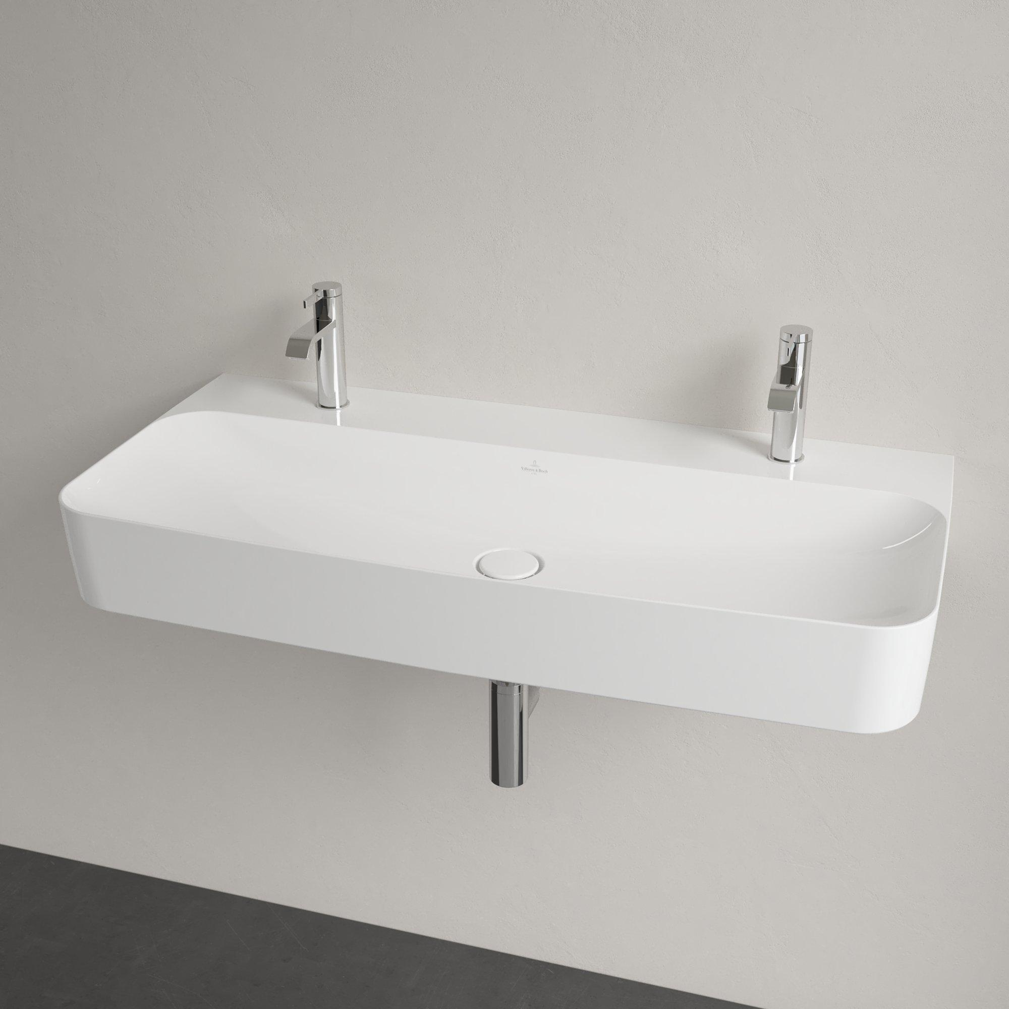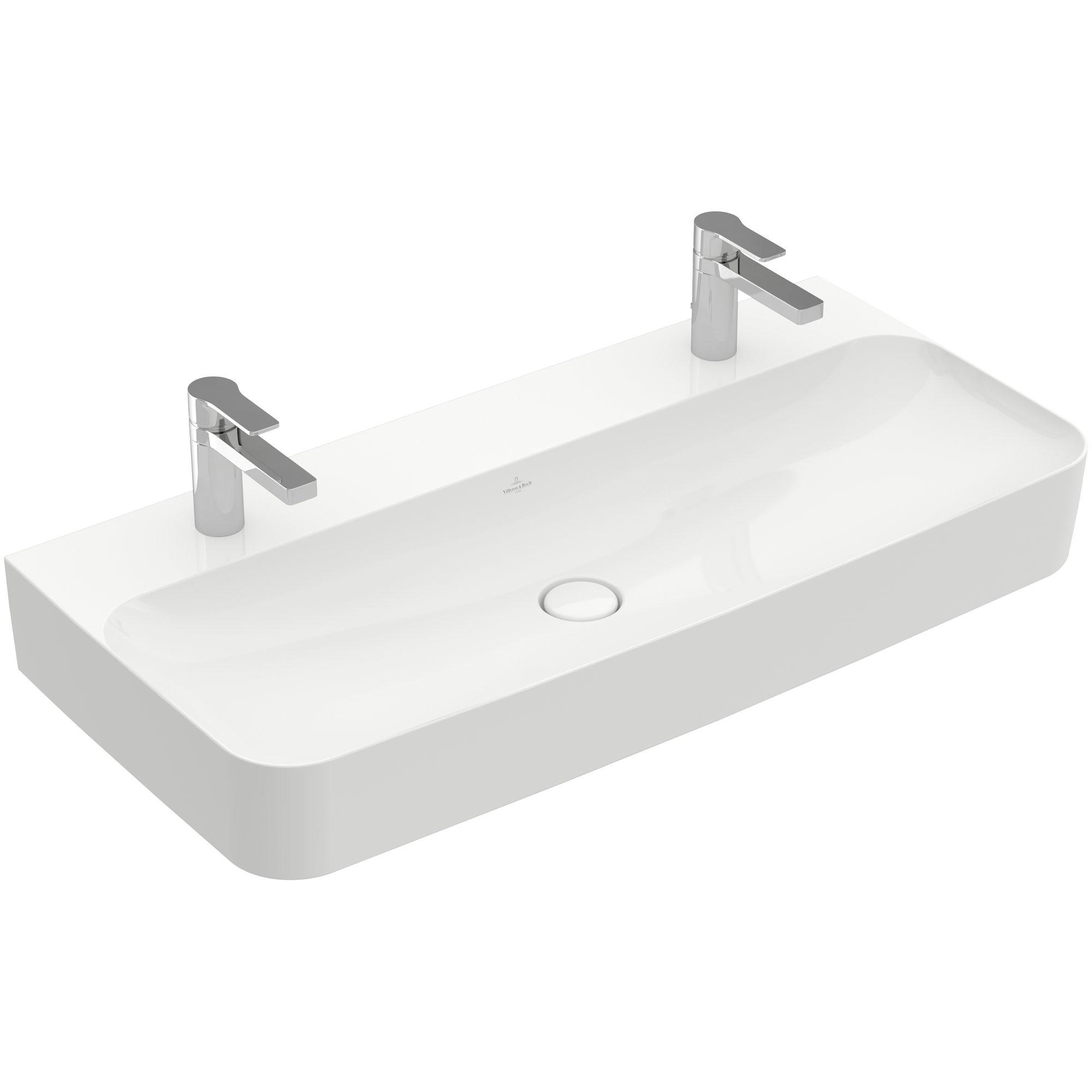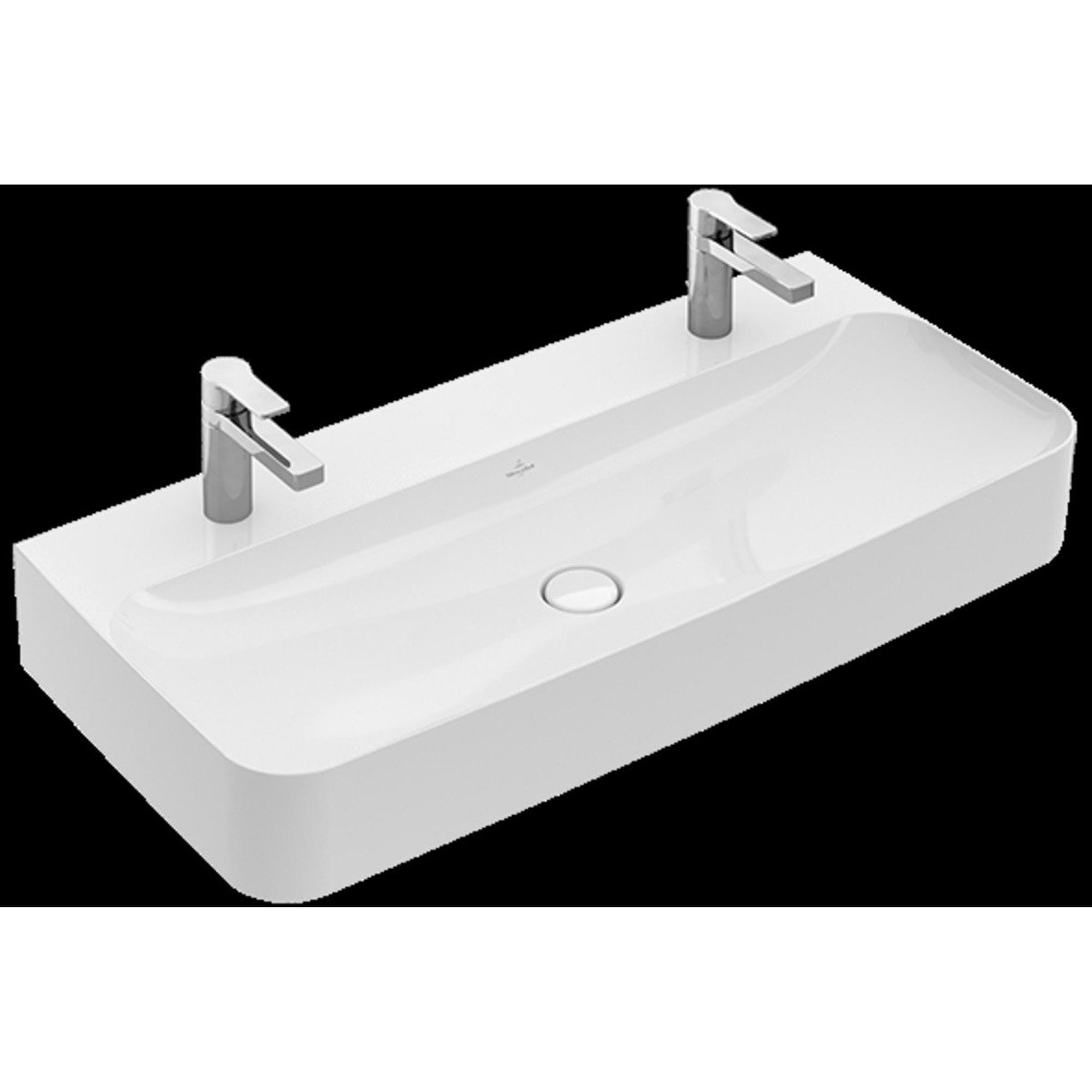 Villeroy & Boch Finion wastafel met 2 kraangaten 100x47cm ceramic+ zonder overloop wit