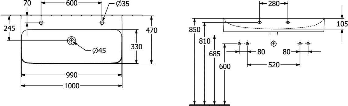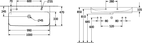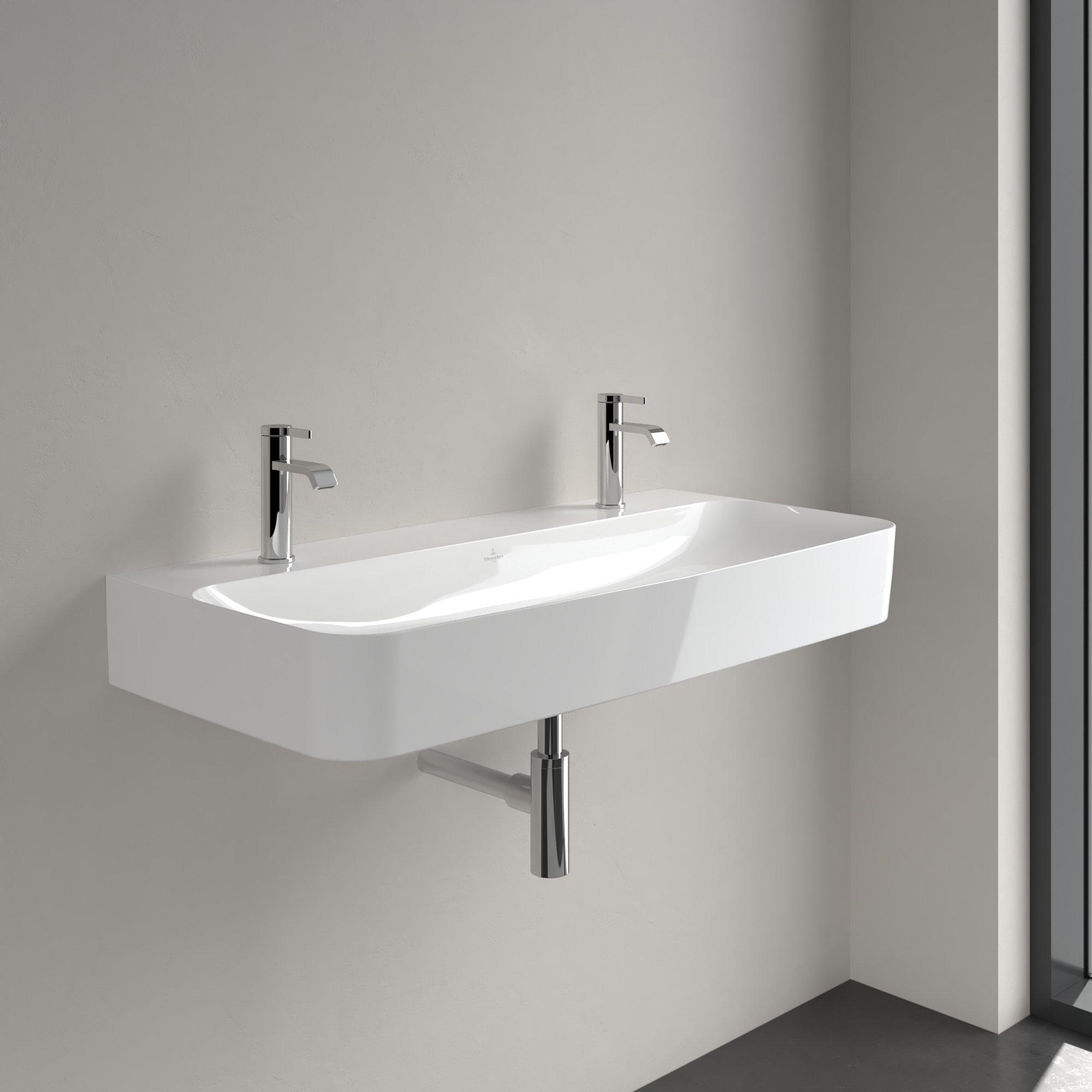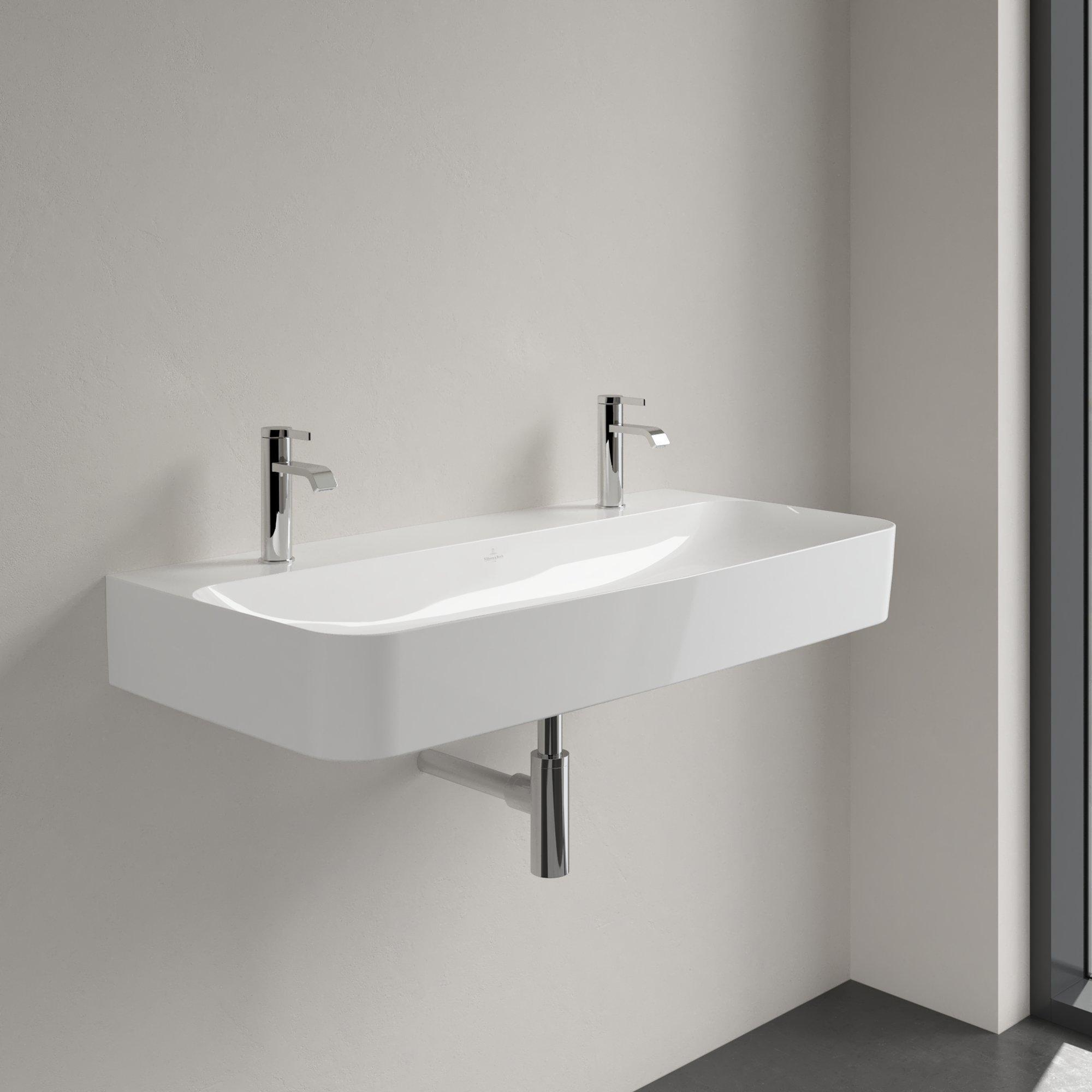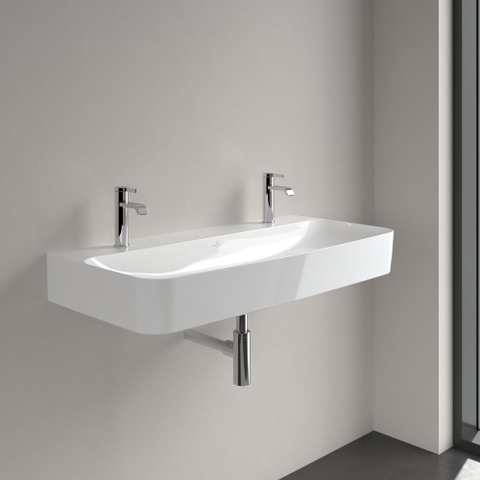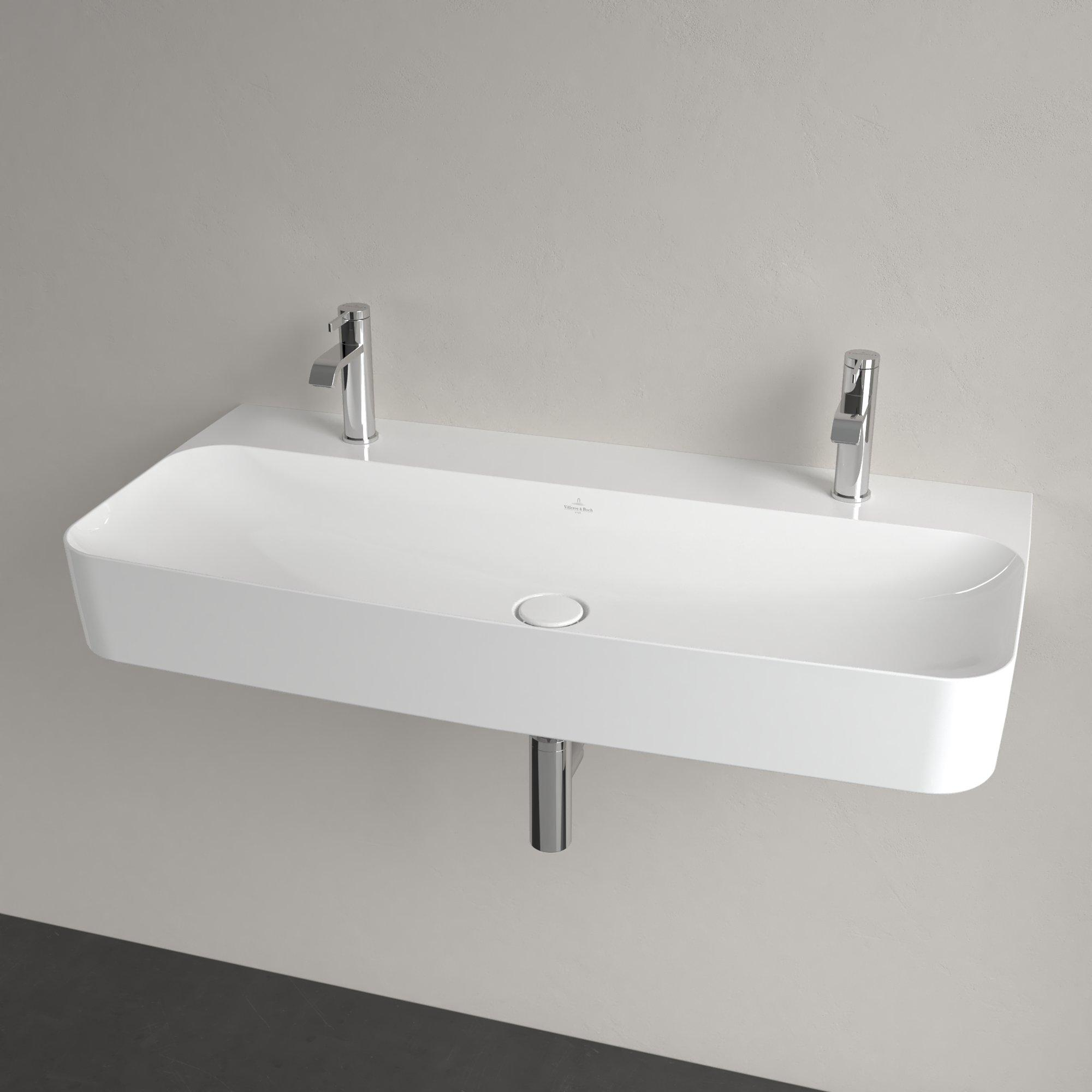 Villeroy & Boch Finion wastafel met 2 kraangaten 100x47cm ceramic+ zonder overloop wit
