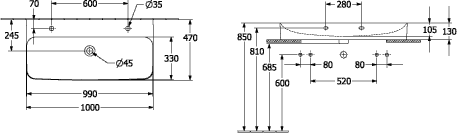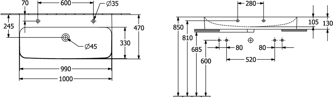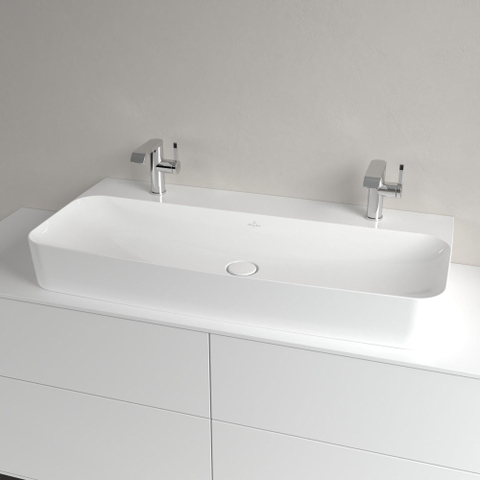Villeroy & Boch Finion wastafel onderzijde geslepen met 2 kraangaten 100x47cm ceramic+ zonder overloop wit SW106498