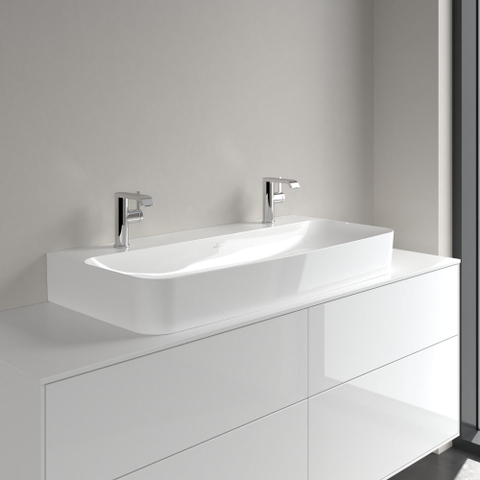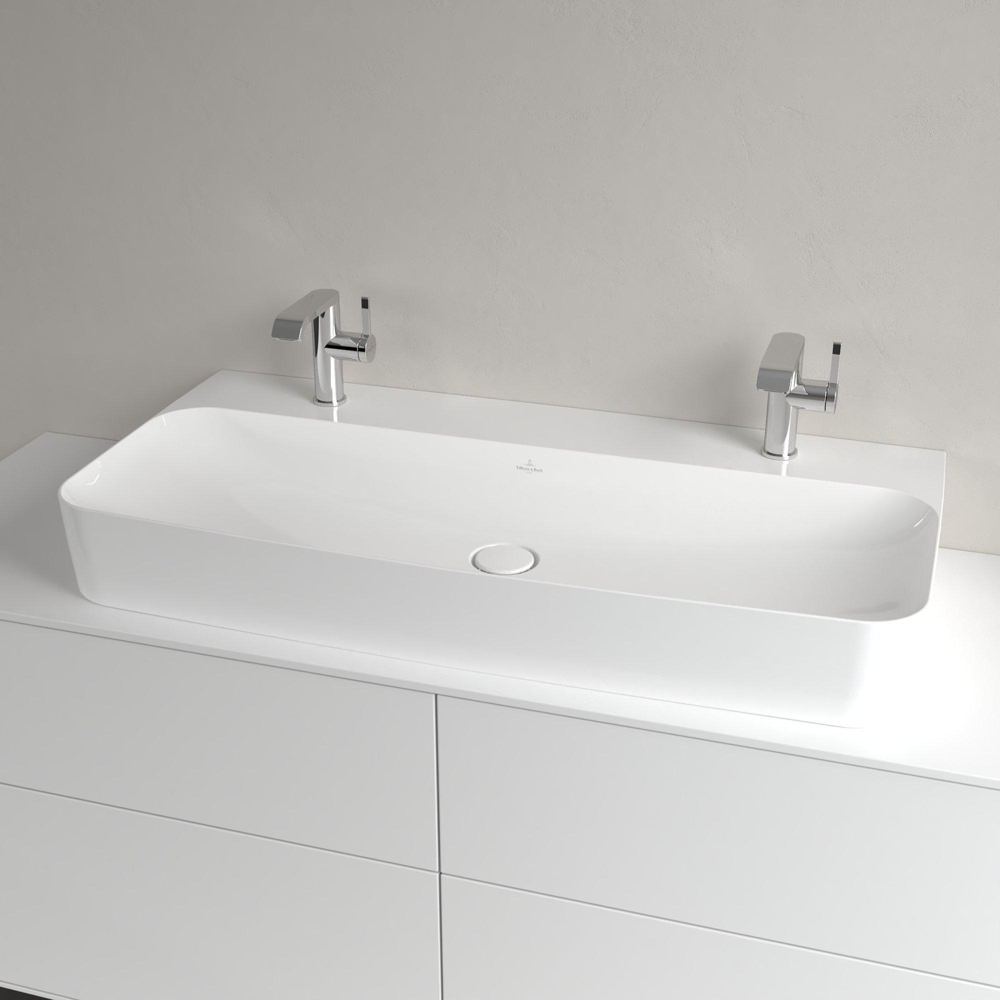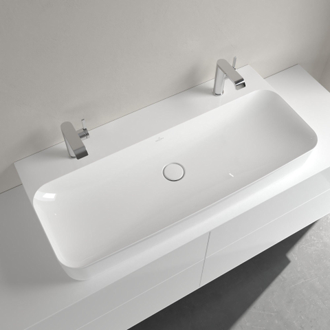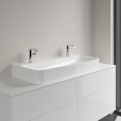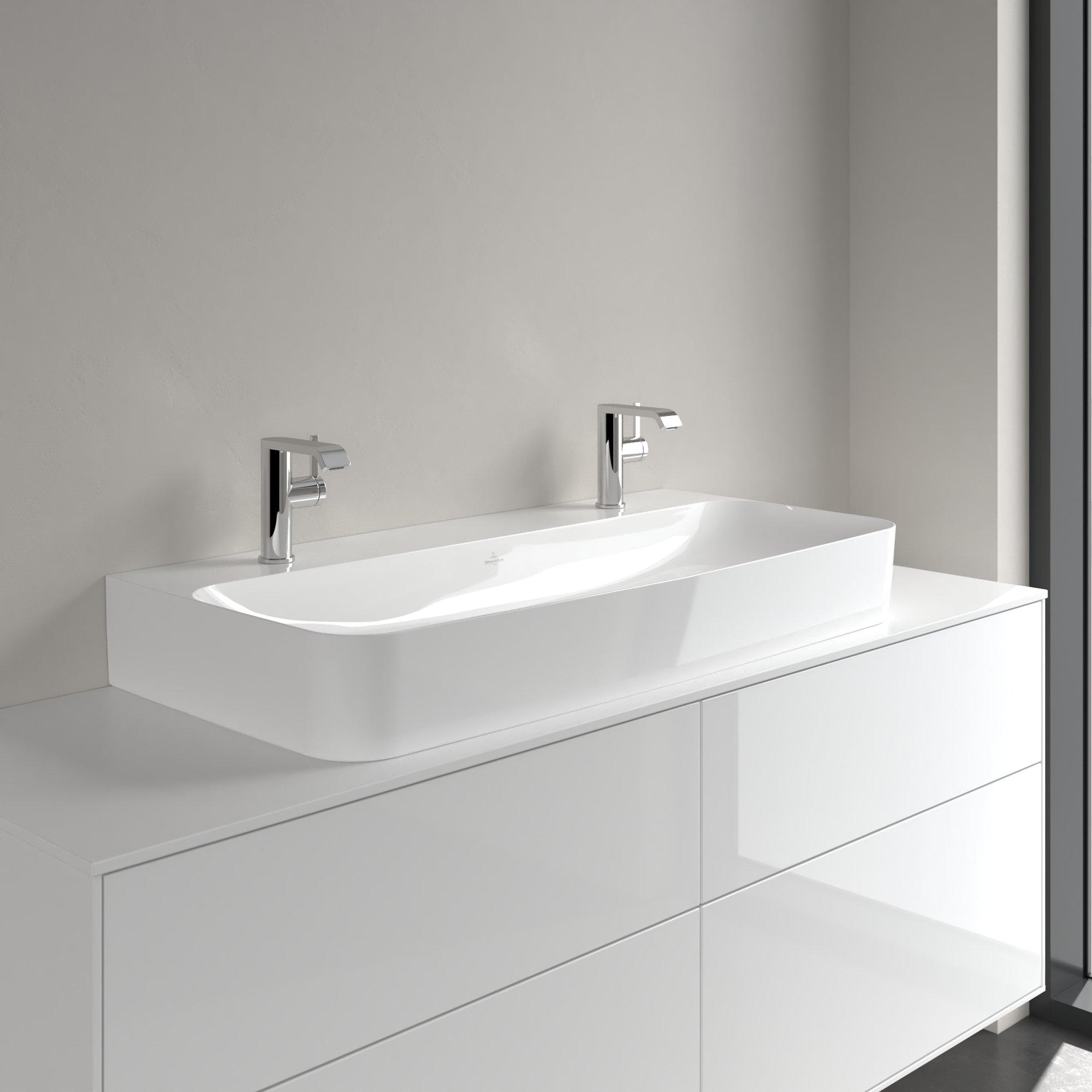 Villeroy & Boch Finion wastafel onderzijde geslepen met 2 kraangaten 100x47cm ceramic+ zonder overloop wit
