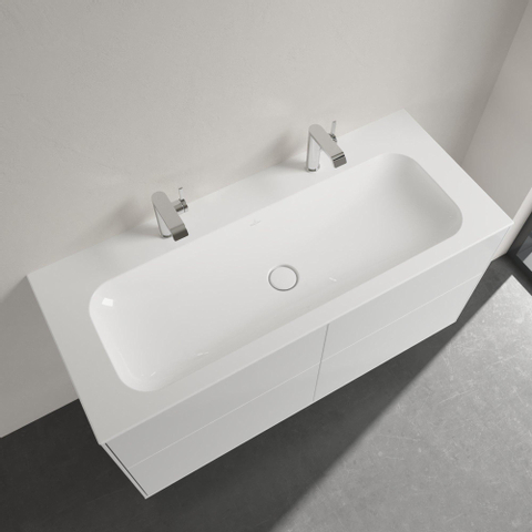 Villeroy & Boch Finion meubelwastafel met 2 kraangaten 120x50cm ceramic+ zonder overloop wit