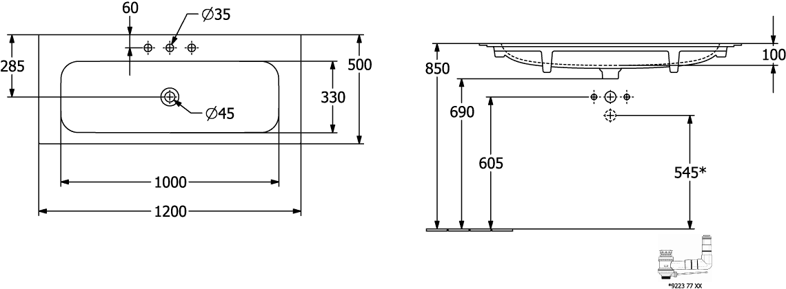Villeroy & Boch Finion Meubelwastafel - 1200 x 500 x 160 mm - Wit Alpin CeramicPlus - zonder overloop - ongeslepen