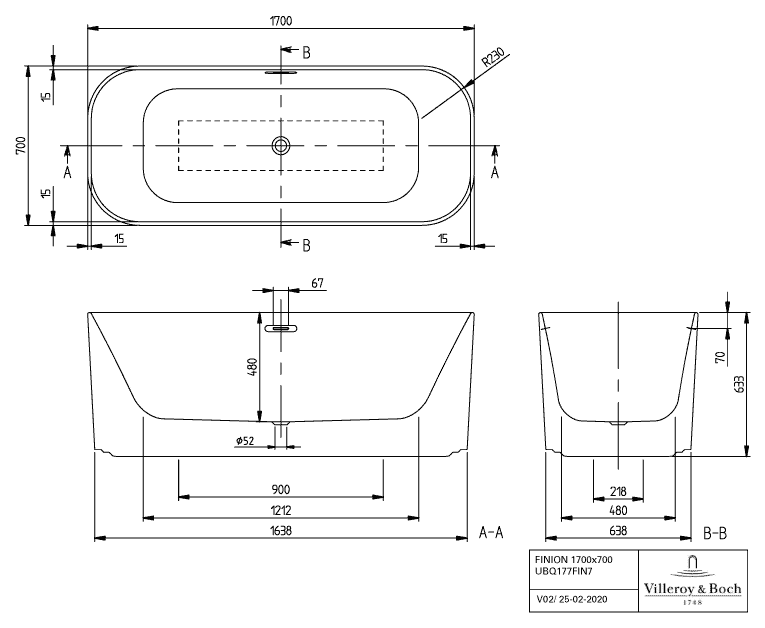 Villeroy & Boch Finion kunststof vrijstaand duobad quaryl ovaal 170x70x48cm incl. push-to-open afvoerplug + overloop chroom/wit