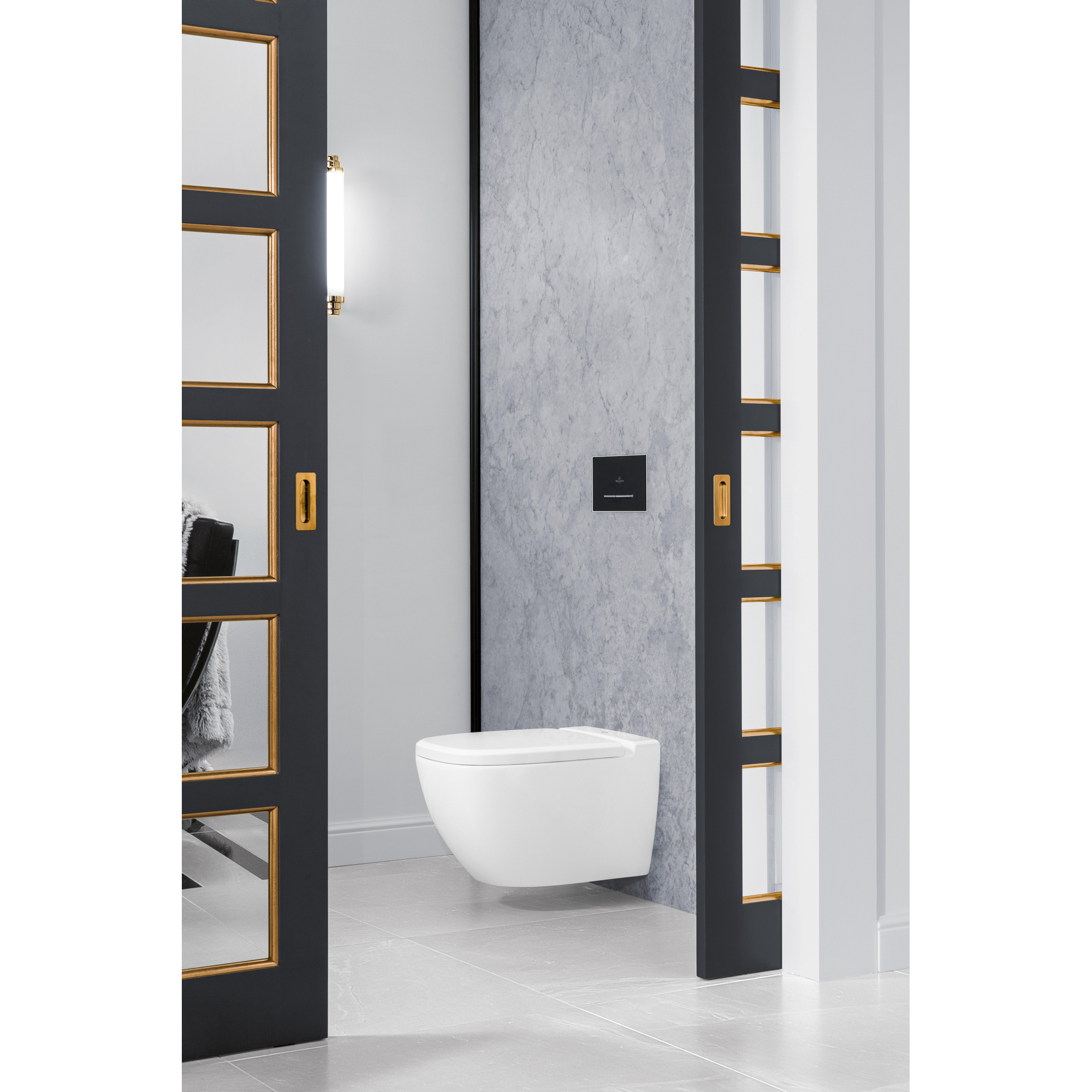 Dit Villeroy & Boch bedieningspaneel heeft een zwarte afwerking. Dankzij zijn donkere look oogt hij zeer modern en past erg mooi in industriële badkamers. Ook in zwart-witte badkamers komt dit bedieningspaneel schitterend tot zijn recht en je kunt deze kleur ook fantastisch met betonlook combineren.