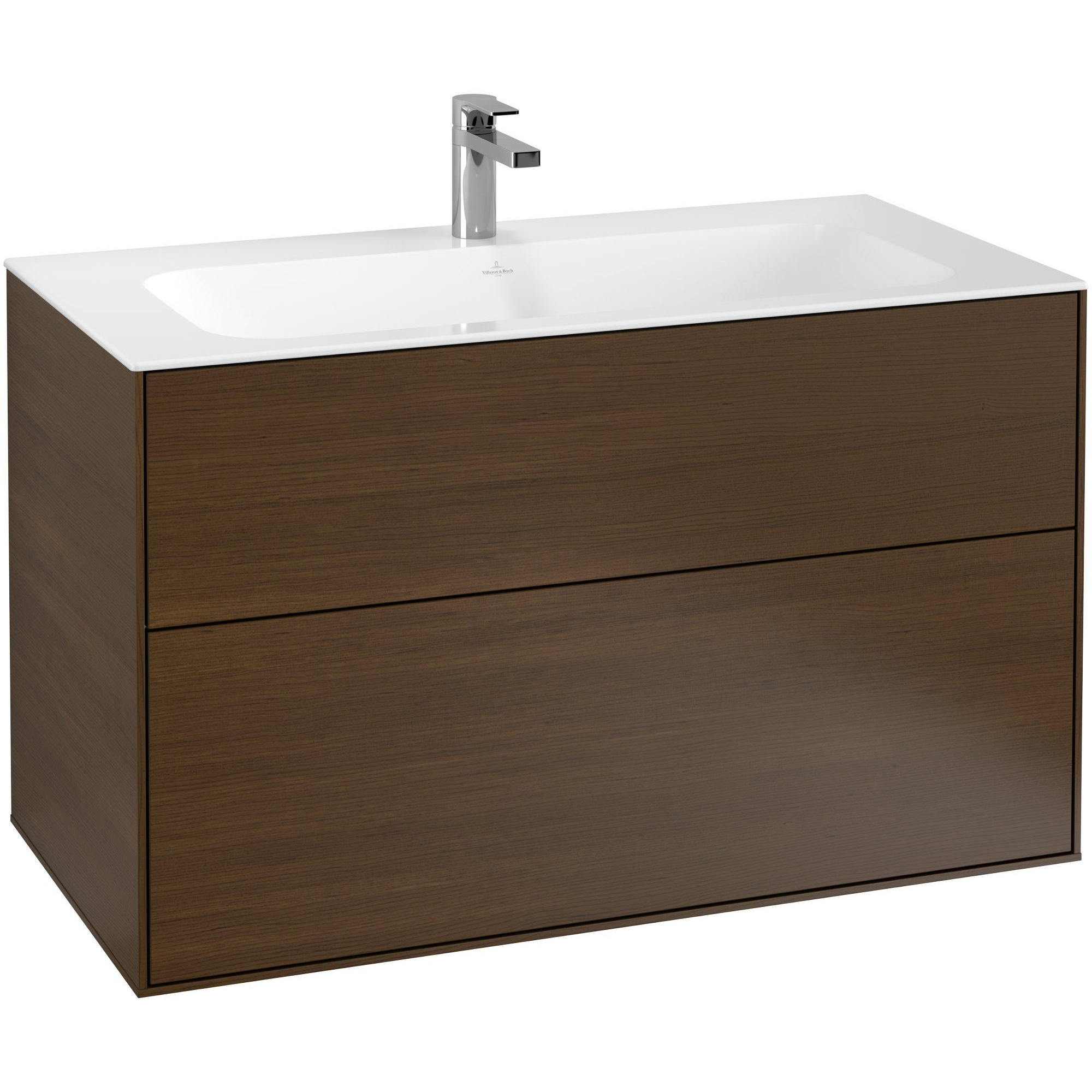 Villeroy & Boch Finion wastafelonderbouwkast met 2 laden 99.6x59.1x49.8cm v. meubelwast. 4164 AO/A2/AB/A1 walnoot