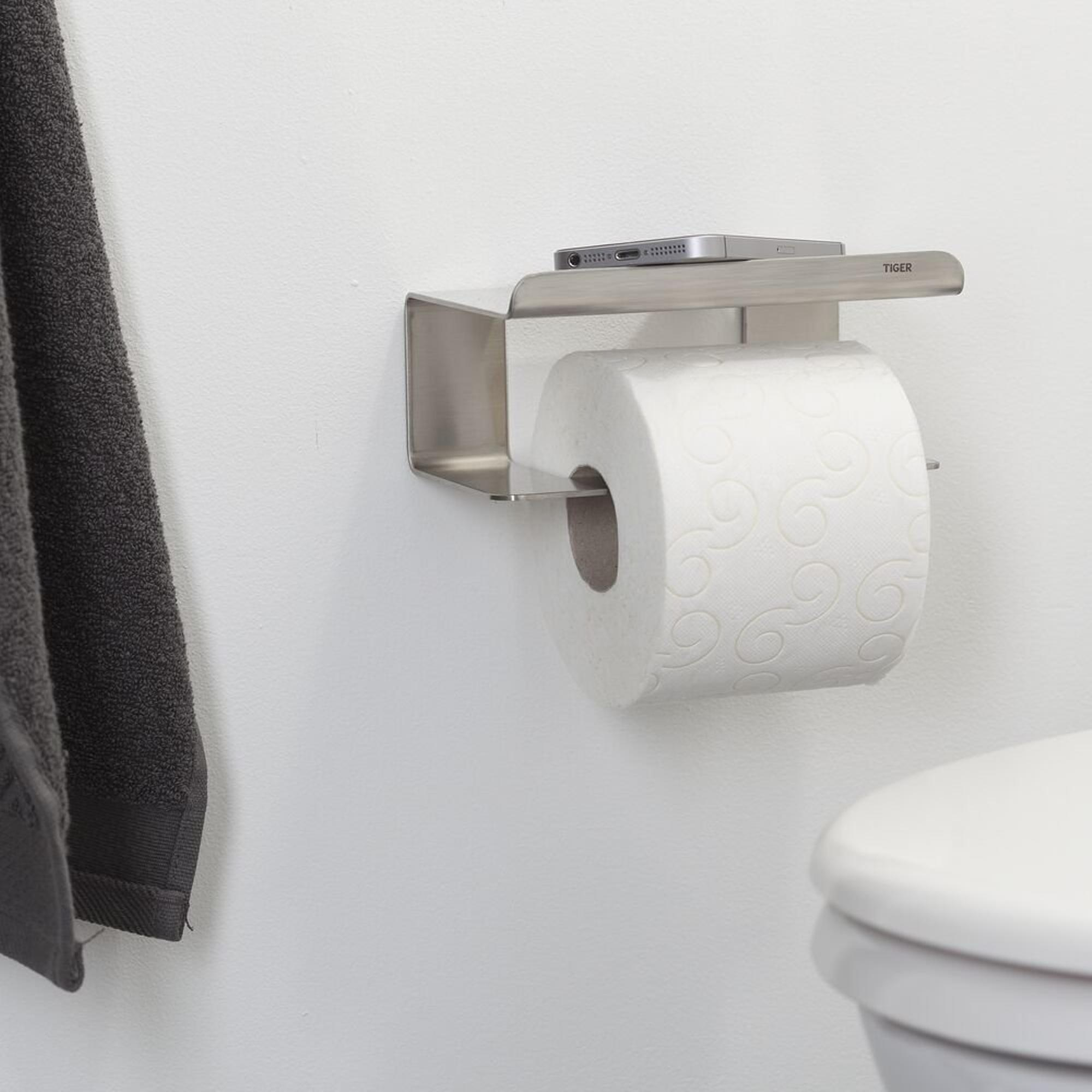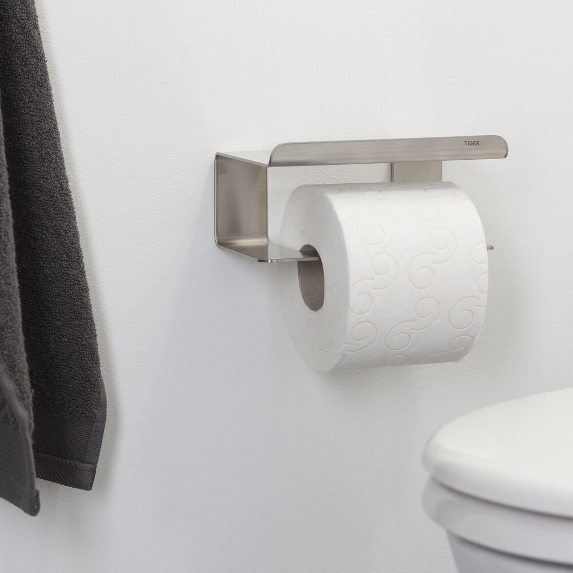 Tiger Colar Toiletrolhouder - zonder klep - met planchet - zelfklevend - geborsteld RVS