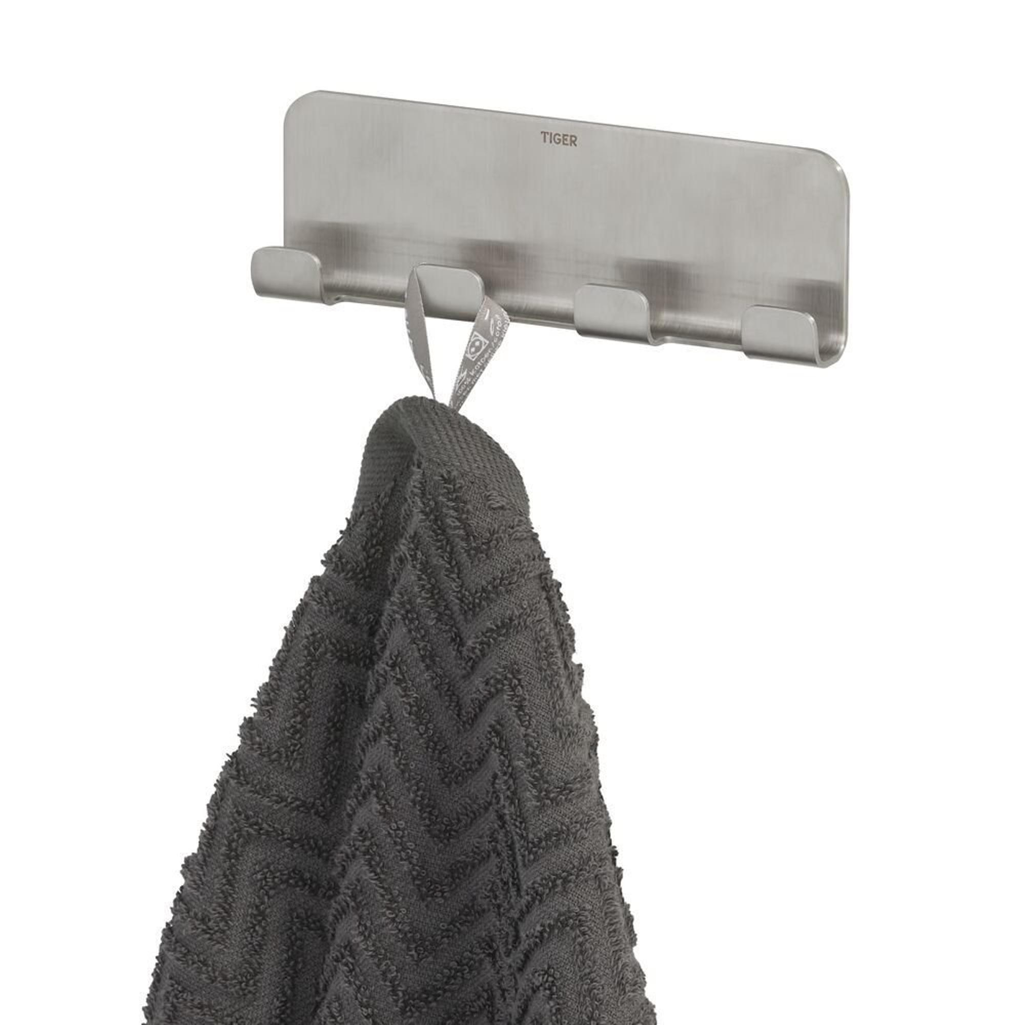 Tiger Colar Handdoekhaak - 4 haken - zelfklevend - geborsteld RVS