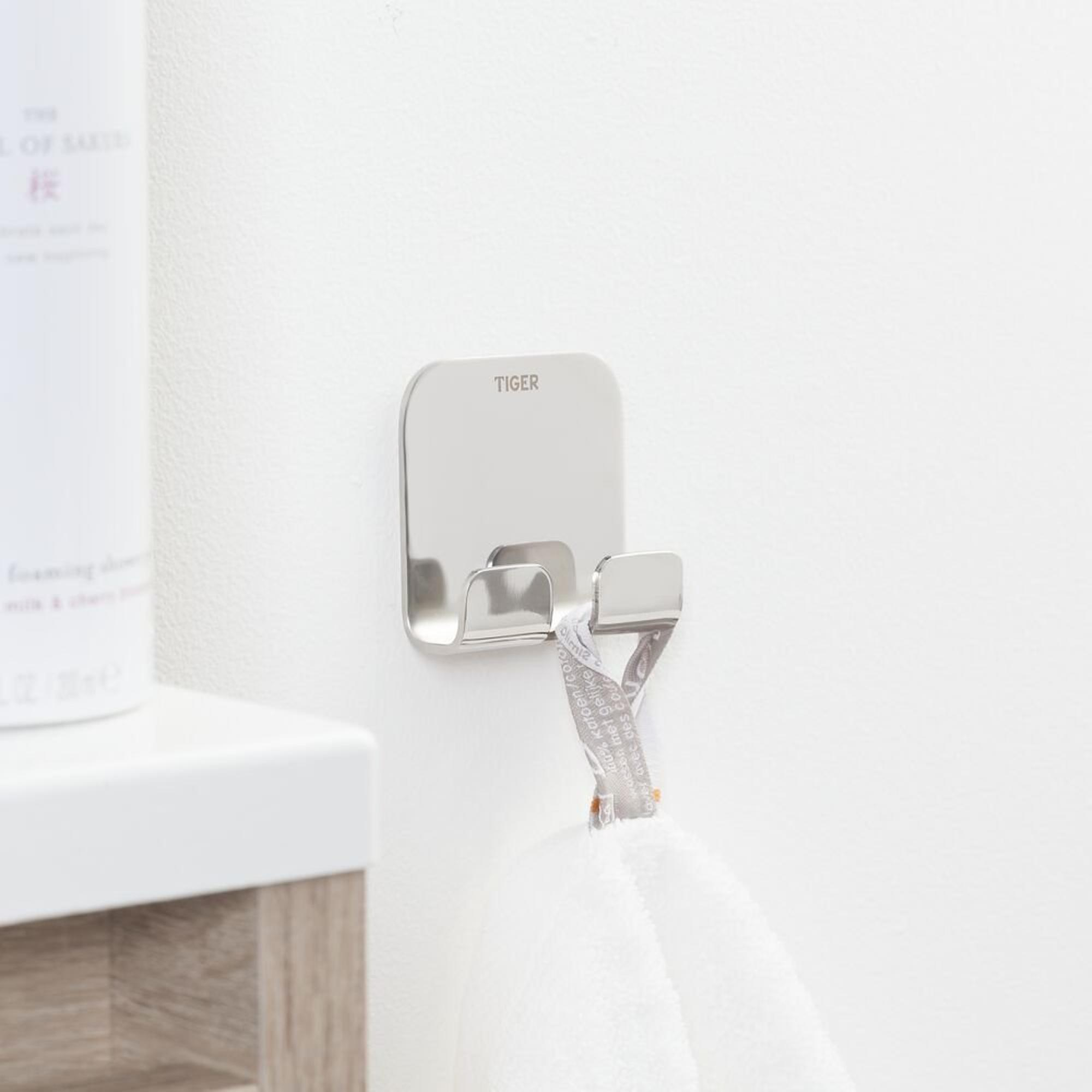 Tiger Colar Handdoekhaak - 2 haken - zelfklevend - gepolijst RVS