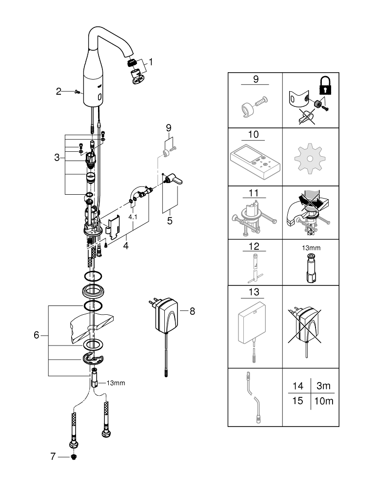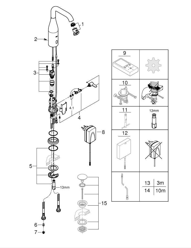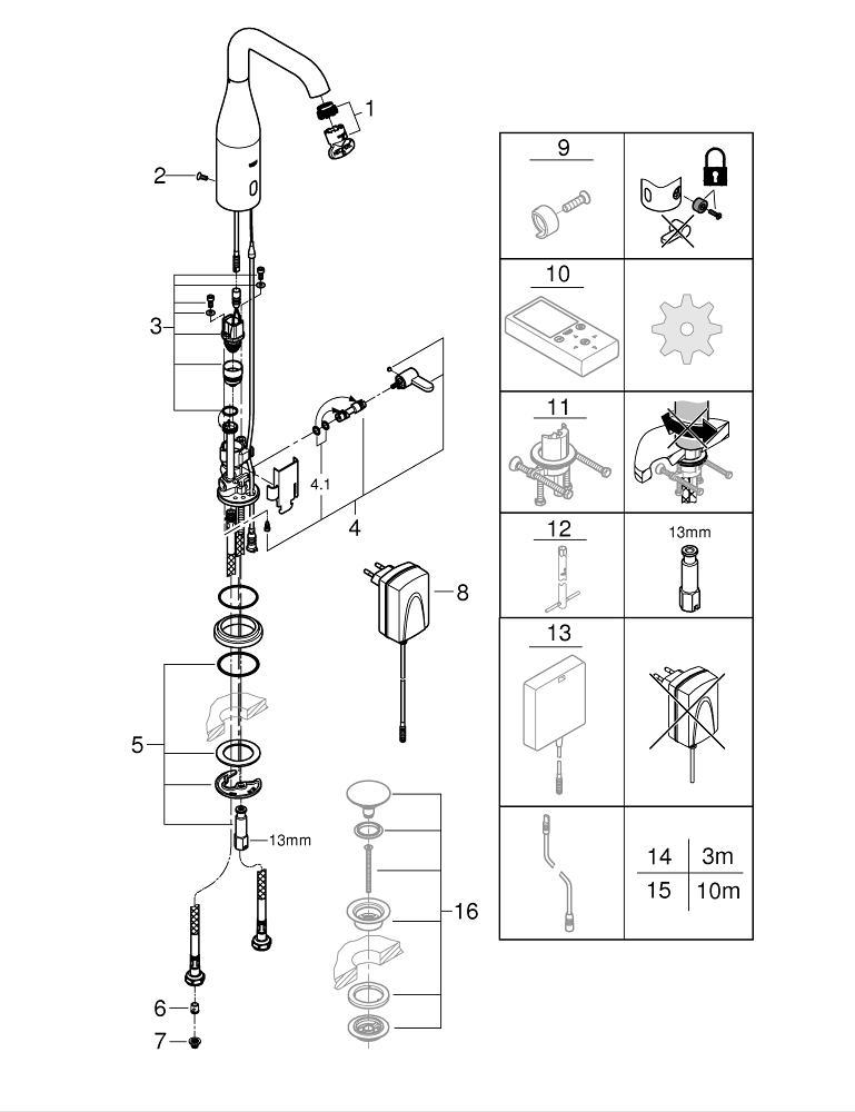 GROHE Essence Wastafelkraan Opbouw - uitloop 12.7cm - electronisch - Adapter - 230V - chroom
