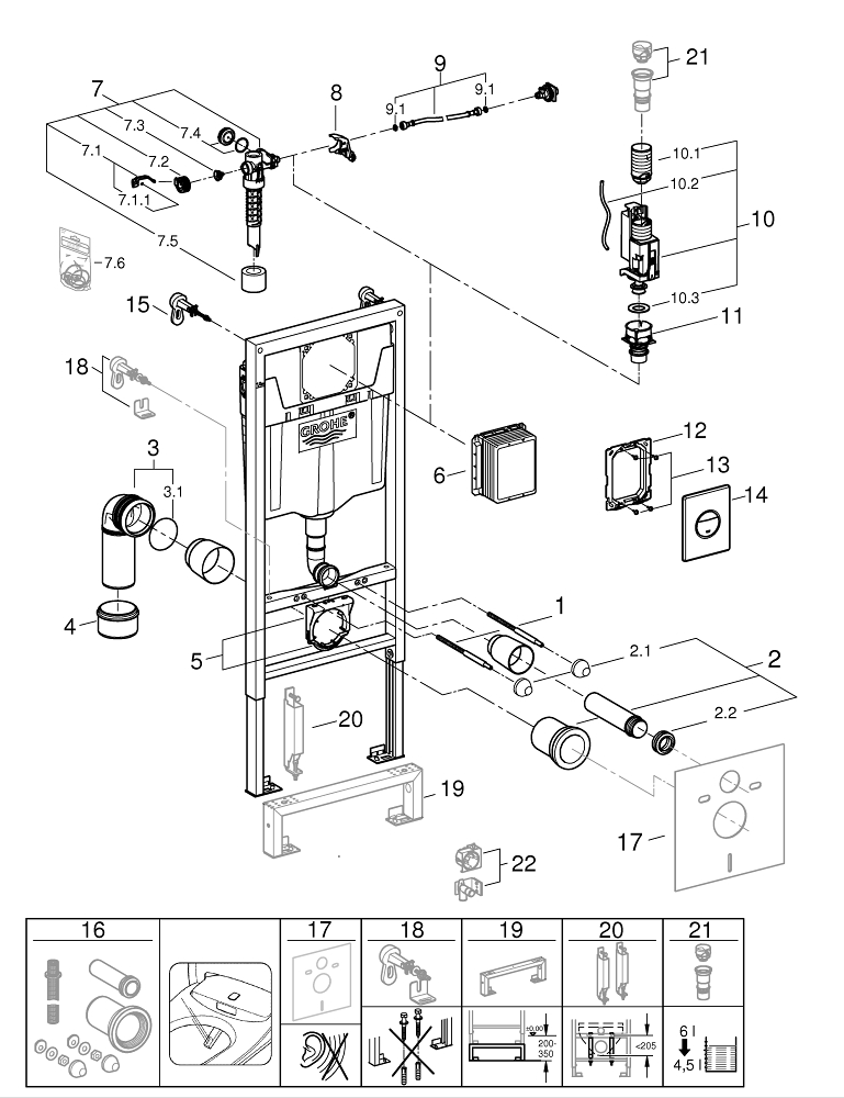 GROHE Rapid sl wc element 3-in 1 set met bedieningsplaat