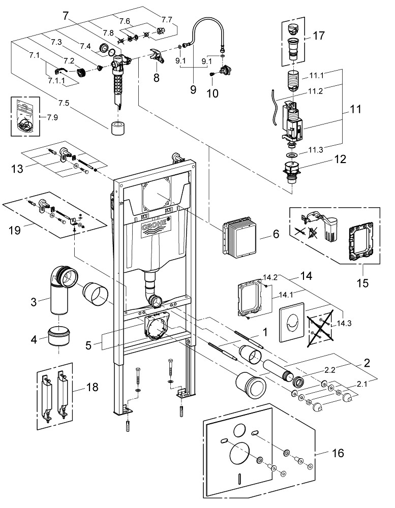 GROHE Rapid sl wc element 3-in 1 set met bedieningsplaat