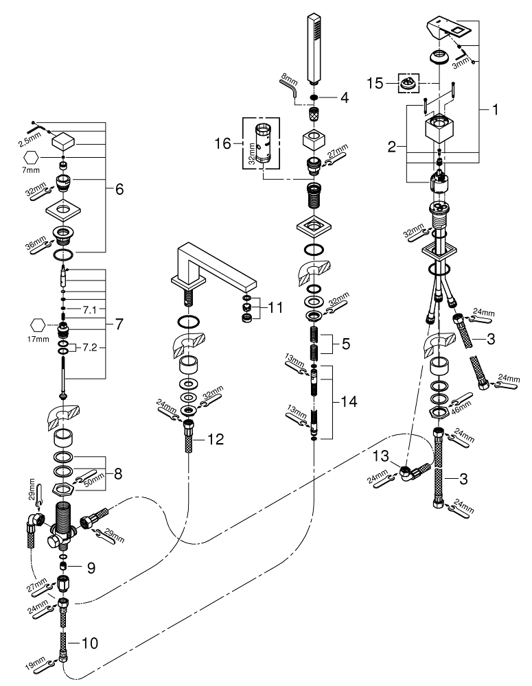 - Geschikt voor 4-gats badrandkraan