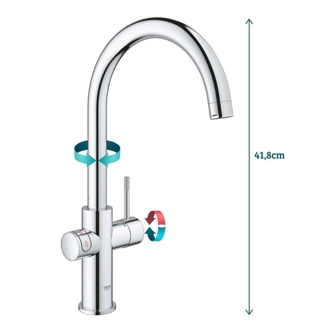 GROHE Red Keukenkraan - hoog - 3 in 1 - c uitloop - l size boiler - chroom