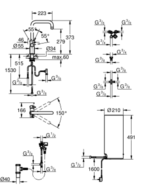 inclusief 70 cm aansluitslang, kruisstuk en wandbeugel