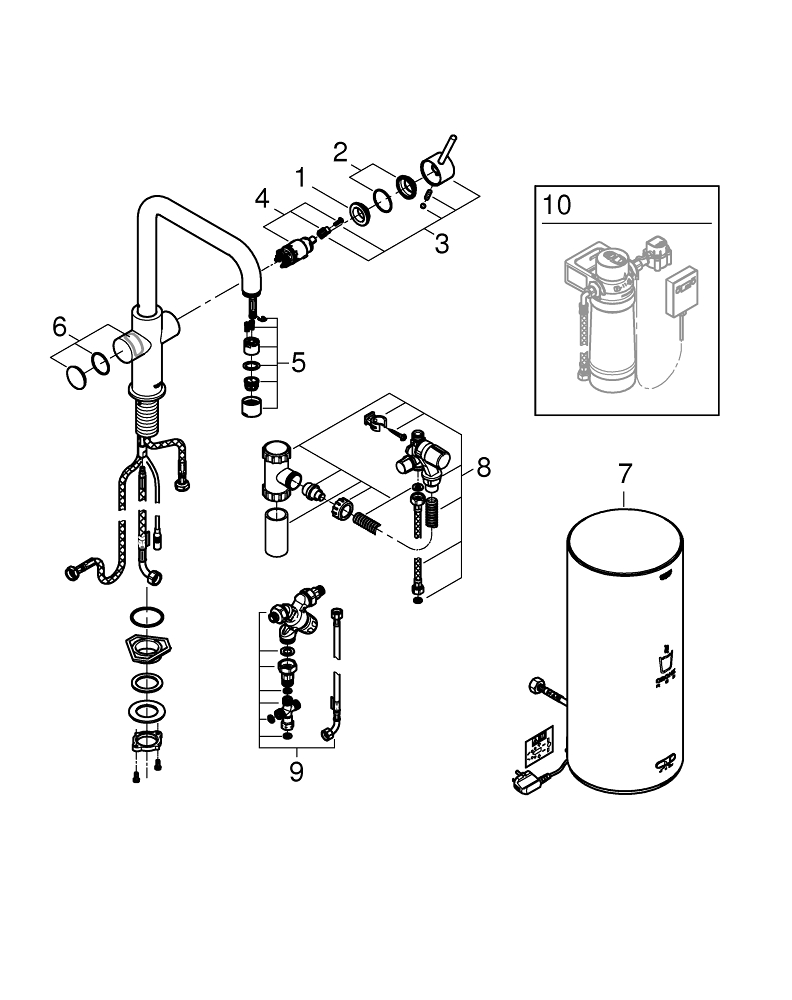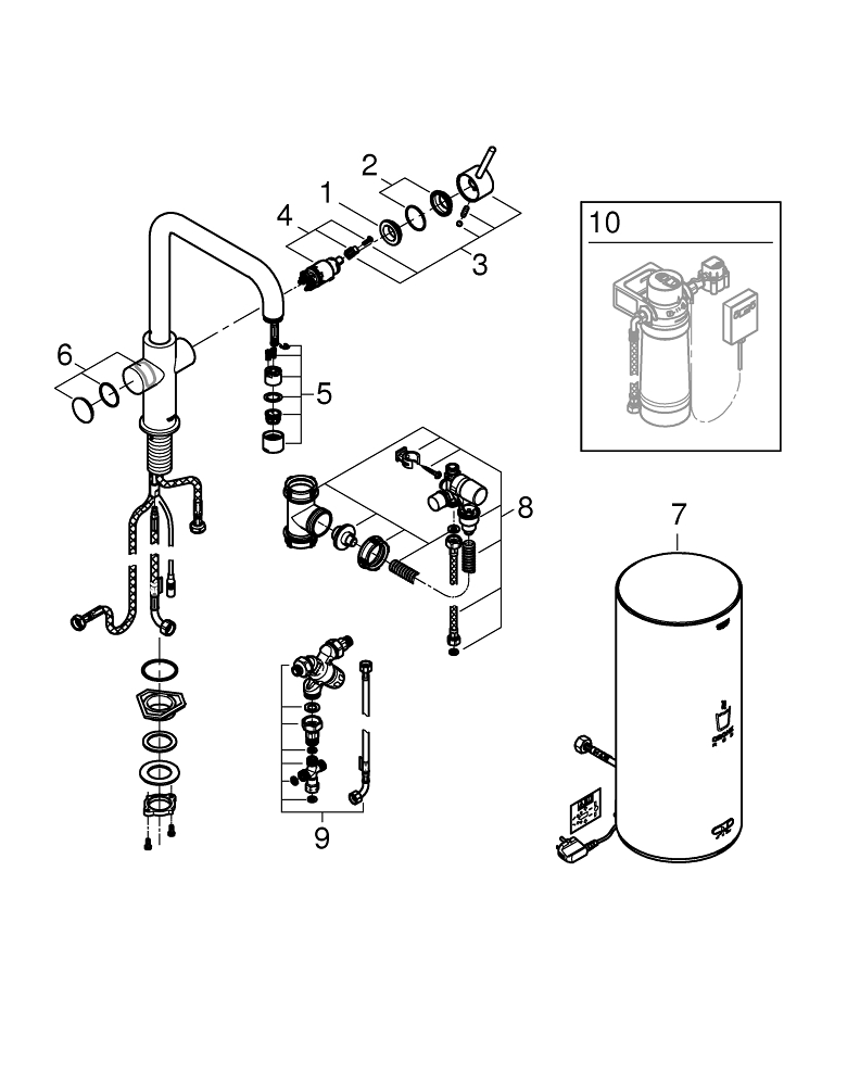 reservoir voor warm* en kokend heet water* bij gebruik met mengventiel