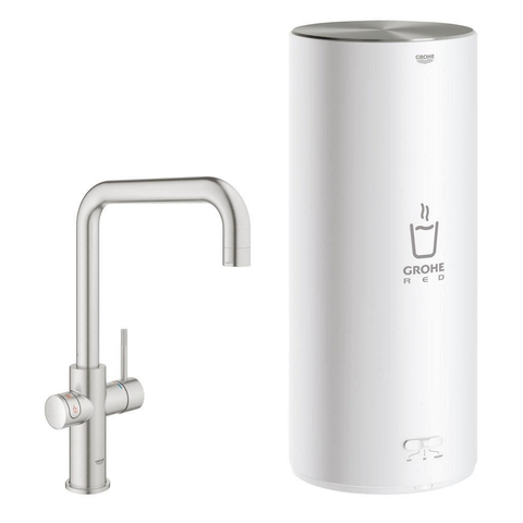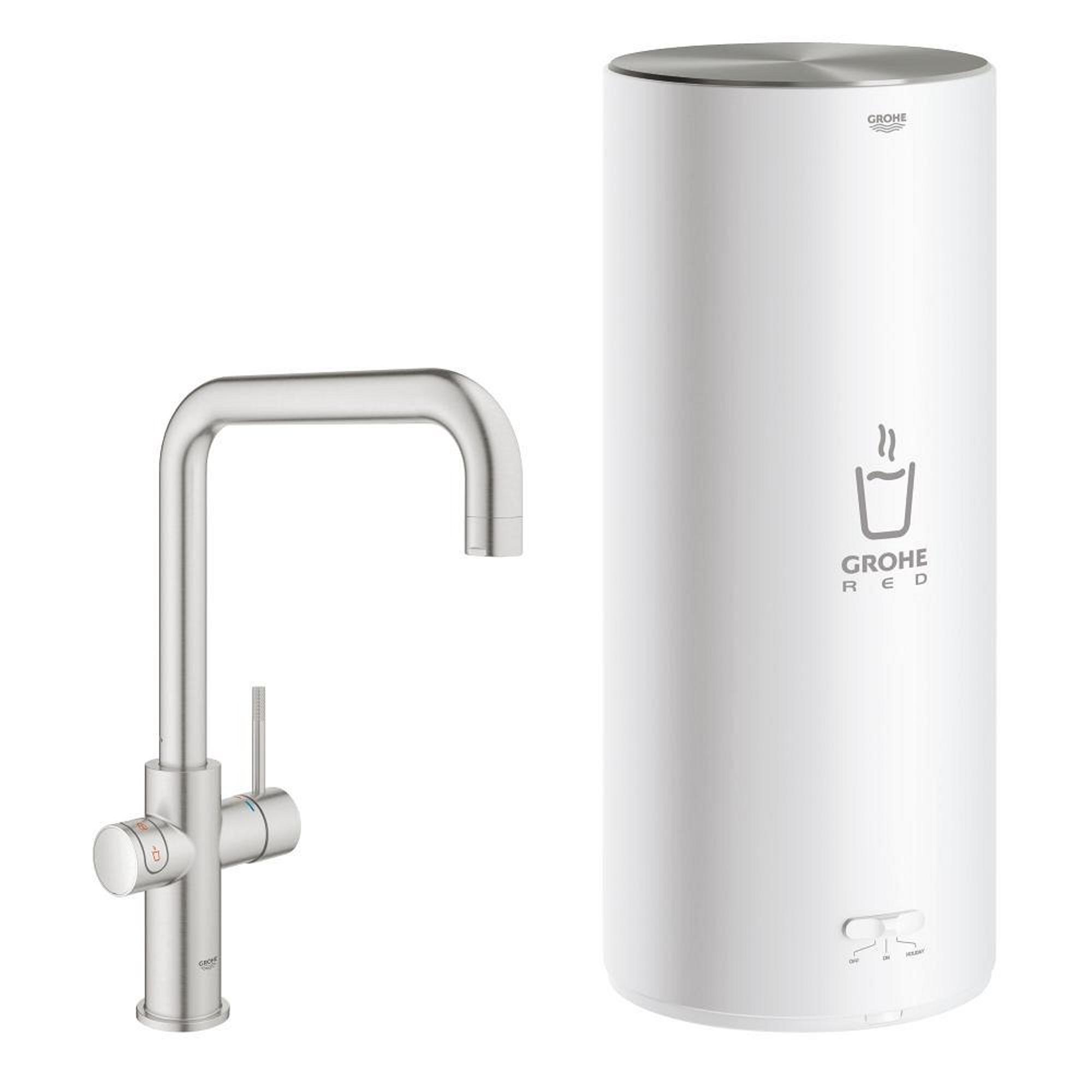 GROHE Red Keukenkraan - hoog - 3 in 1 - u uitloop - l size boiler - supersteel geborsteld