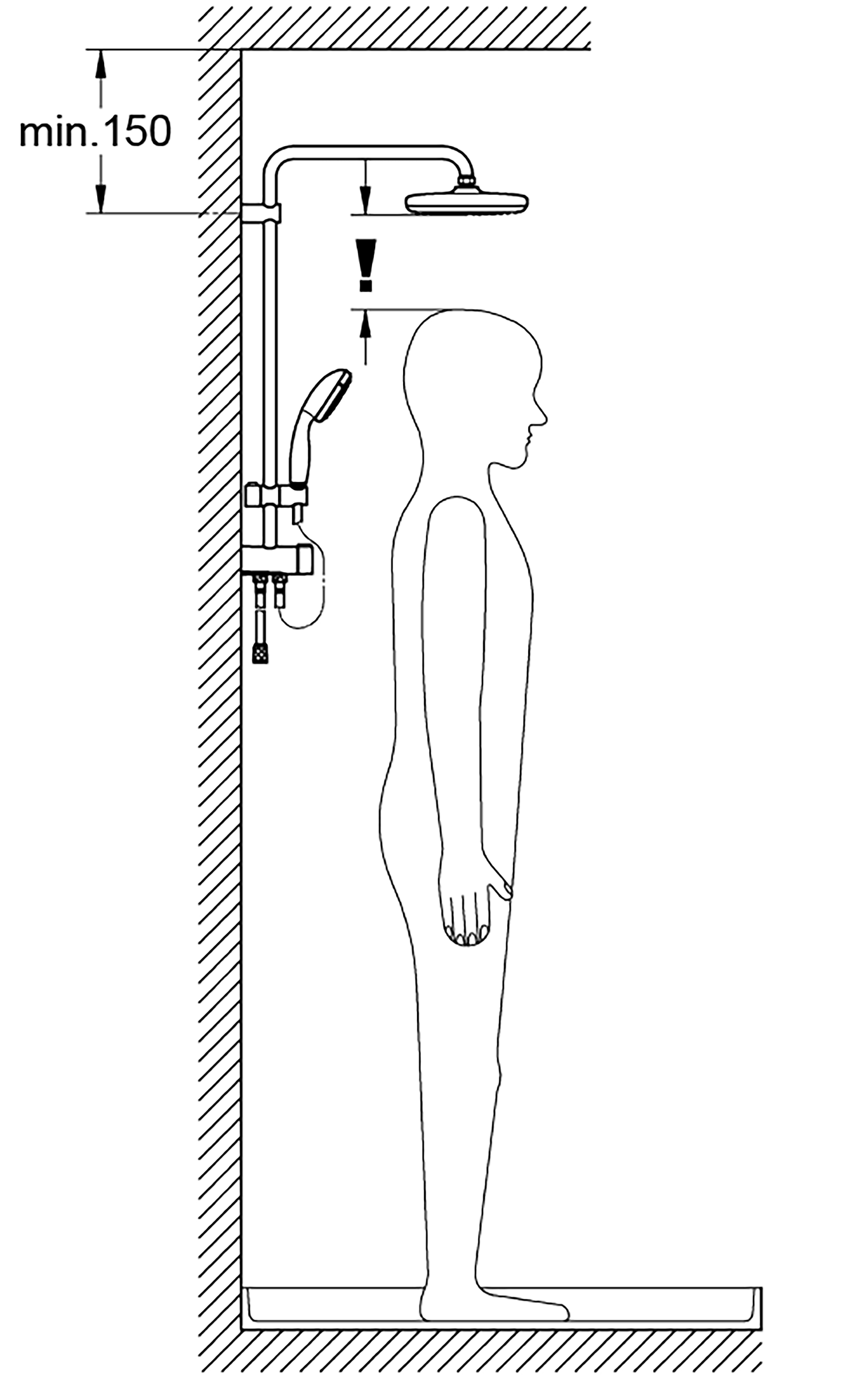 afstand tussen omstelkraan en de bovenste beugel: 620 mm