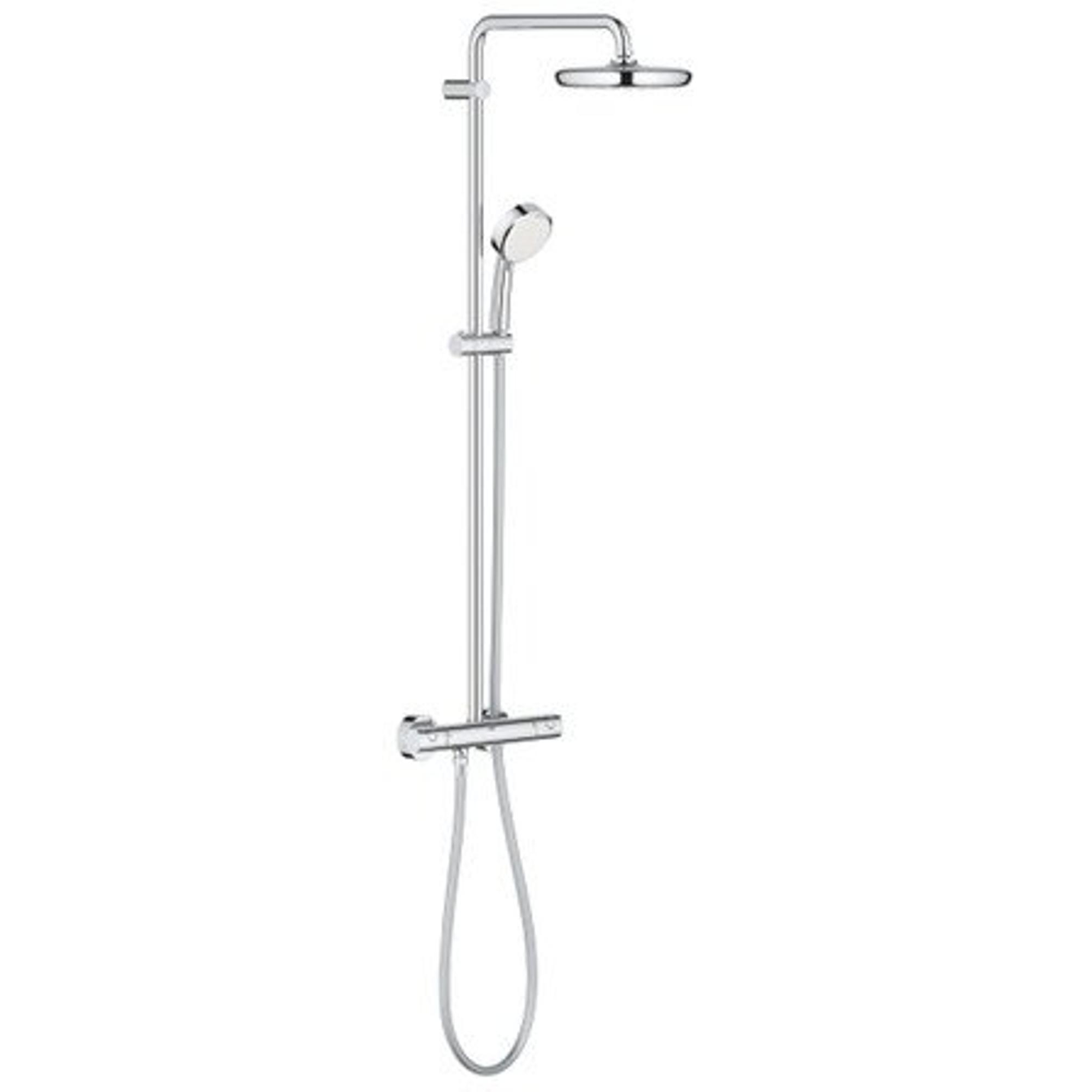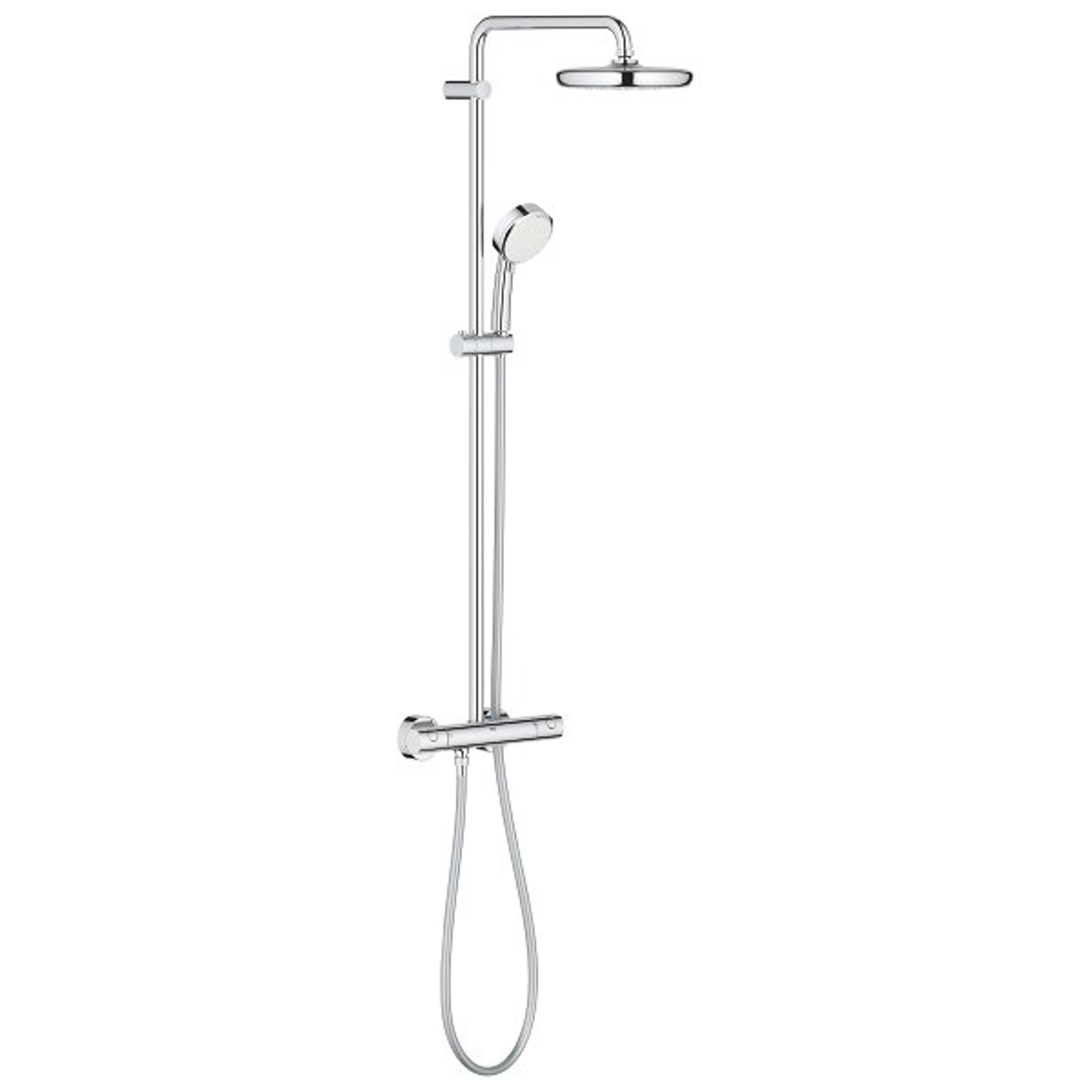 Een design douchesysteem voor een aantrekkelijke prijs – met precisietechniek van GROHE! Dit zeer aantrekkelijk geprijsde New Tempesta Cosmopolitan douchesysteem is de perfecte keuze voor de moderne badkamer. Zoals alle GROHE douchesystemen is hij eenvoudig te installeren en voorzien van de beste technologieën. De hoofddouche van 160 mm is kantelbaar en de handdouches bevat twee straalsoorten, inclusief de met lucht geïnjecteerde straalsoort GROHE Rain O². GROHE DreamSpray® zorgt voor een perfecte waterverdeling over alle sproeigaatjes. Met GROHE TurboStat® technologie wordt snel en continu de gewenste temperatuur bereikt.
