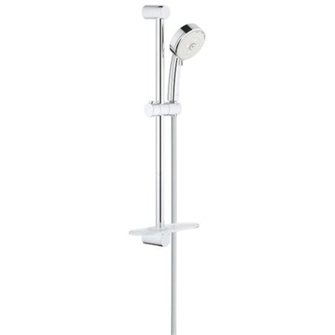 GROHE New Tempesta Cosmopolitan 100 Glijstangset - 60cm - ronde handdouche - 3 straalsoorten - gladde doucheslang - met zeepschaal - chroom/wit