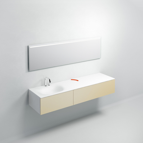 AluiteHet wastafelblad is gemaakt van aluite. Aluite is een composietmateriaal met een soft-touch effect. Het bestaat voor een groot deel uit natuurlijke mineralen, aangevuld met een klein percentage van polyeser- en acrylpolymeren. Het materiaal is van hoge kwaliteit en is makkelijk schoon te maken met milde schoonmaakproducten. Schuursponsjes, schuurmiddelen of chemische schoonmaakproducten zijn niet geschikt om het wastafelblad mee schoon te maken. Deze producten beschadigen het materiaal!