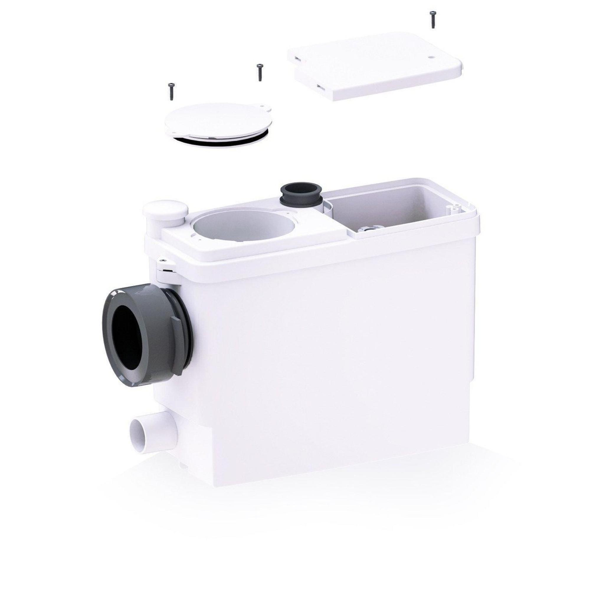 Sanibroyeur Sanipack vuilwaterpompunit, geschikt voor fecaliën, reservoir kunststof, nom. debiet 3.2m³/h, opvoerhoogte bij nom. debiet 50kPa, kwaliteitsklasse reservoir ABS, kwaliteitsklasse pomphuis kunststof vezelversterkt, inhoud reservoir 9.8L, 1 pompen, max. afmeting vaste delen 5mm