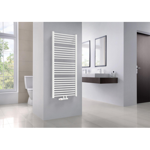 De Royal Plaza Sorbus R handdoekradiator onderscheidt zich door zijn stijlvolle ontwerp en glanzend witte afwerking. Het strakke en moderne uiterlijk past perfect bij diverse badkamerstijlen, van klassiek tot eigentijds. De radiator voegt een vleugje elegantie toe aan de ruimte en creëert een luxe sfeer waarin je heerlijk kunt ontspannen.