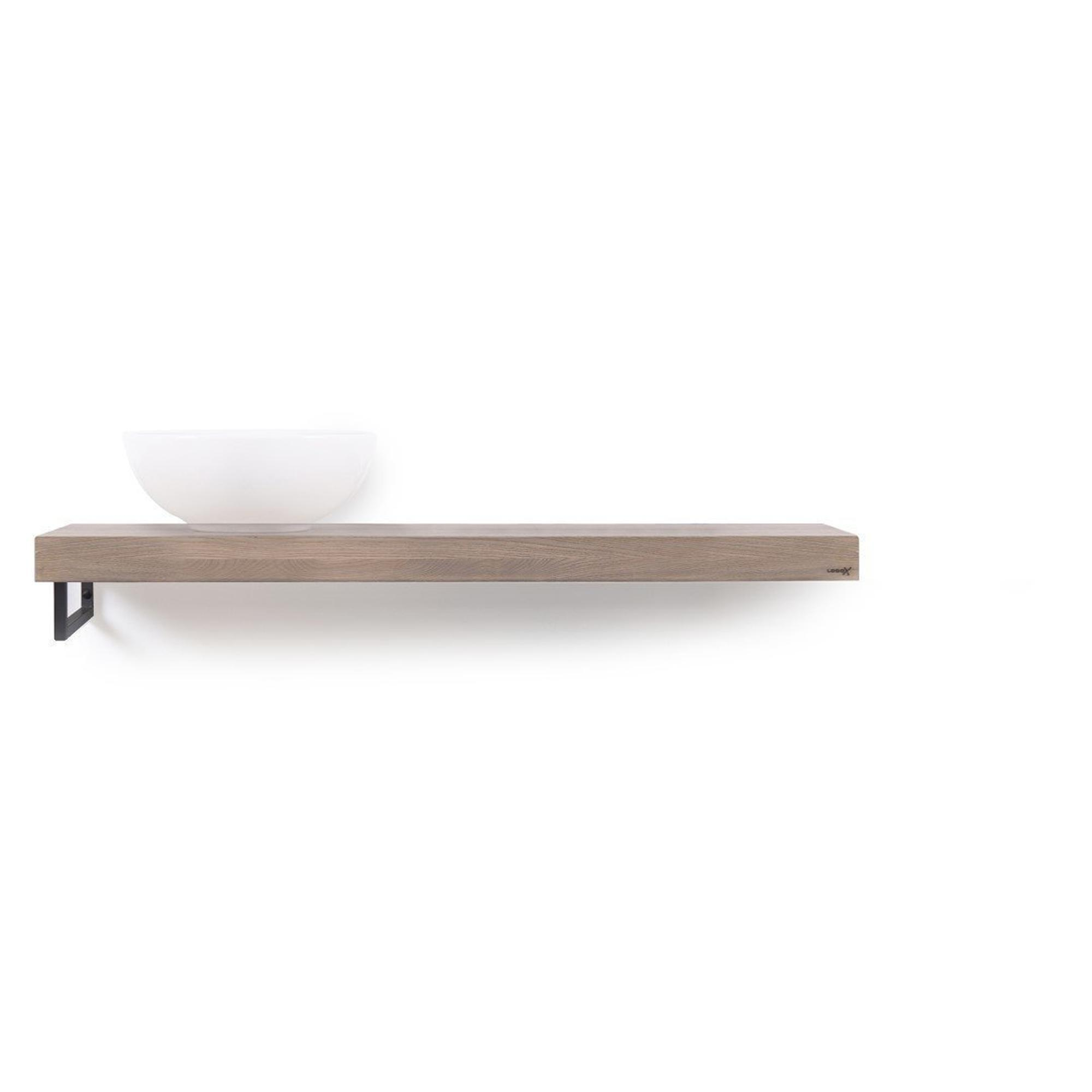 Looox Wood collection Solo wastafelblad - 120x46cm - Met handdoekhouder (links) mat zwart - Massief eiken Old grey