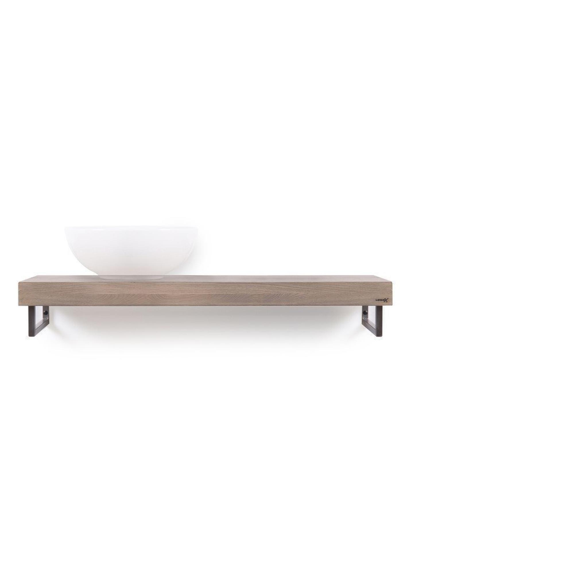 Looox Wood collection Solo wastafelblad - 100x46cm - Met handdoekhouder RVS geborsteld - Massief eiken Old grey