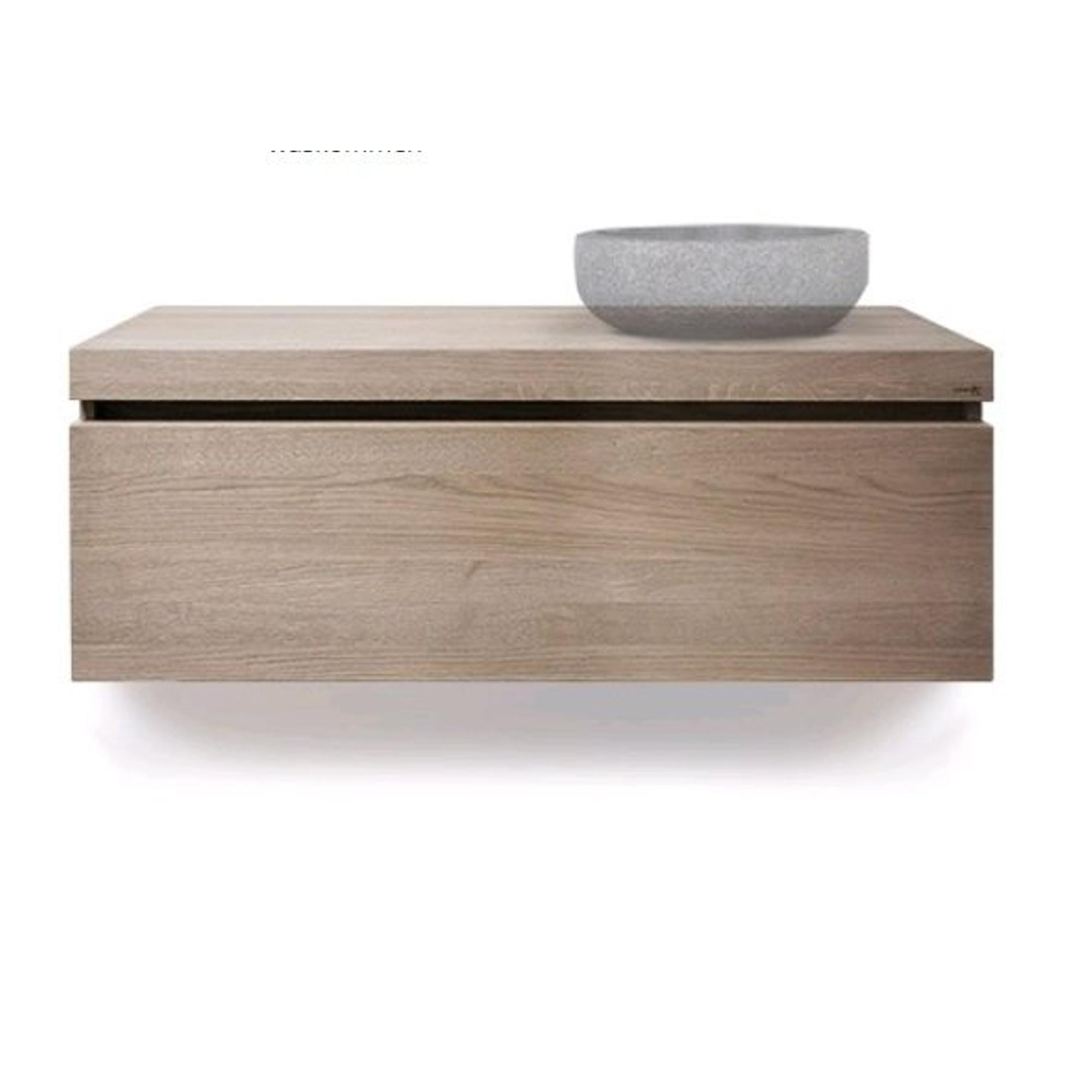 Looox Wood collection Wooden Drawer BoX ladenkast met 1 lade 120x45x46cm met softclose eiken old grey
