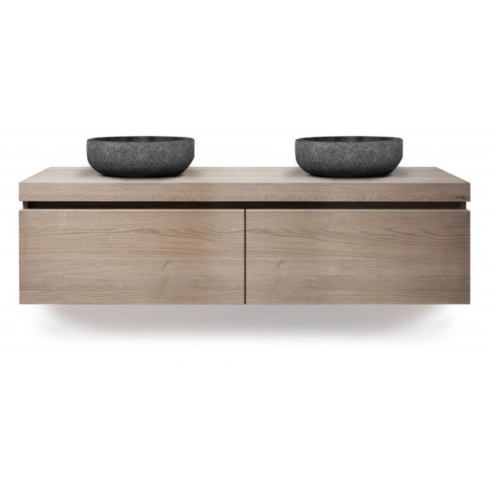 Looox Wood collection Wooden Drawer BoX ladenkast met 2 laden 120x45x46cm met softclose eiken old grey