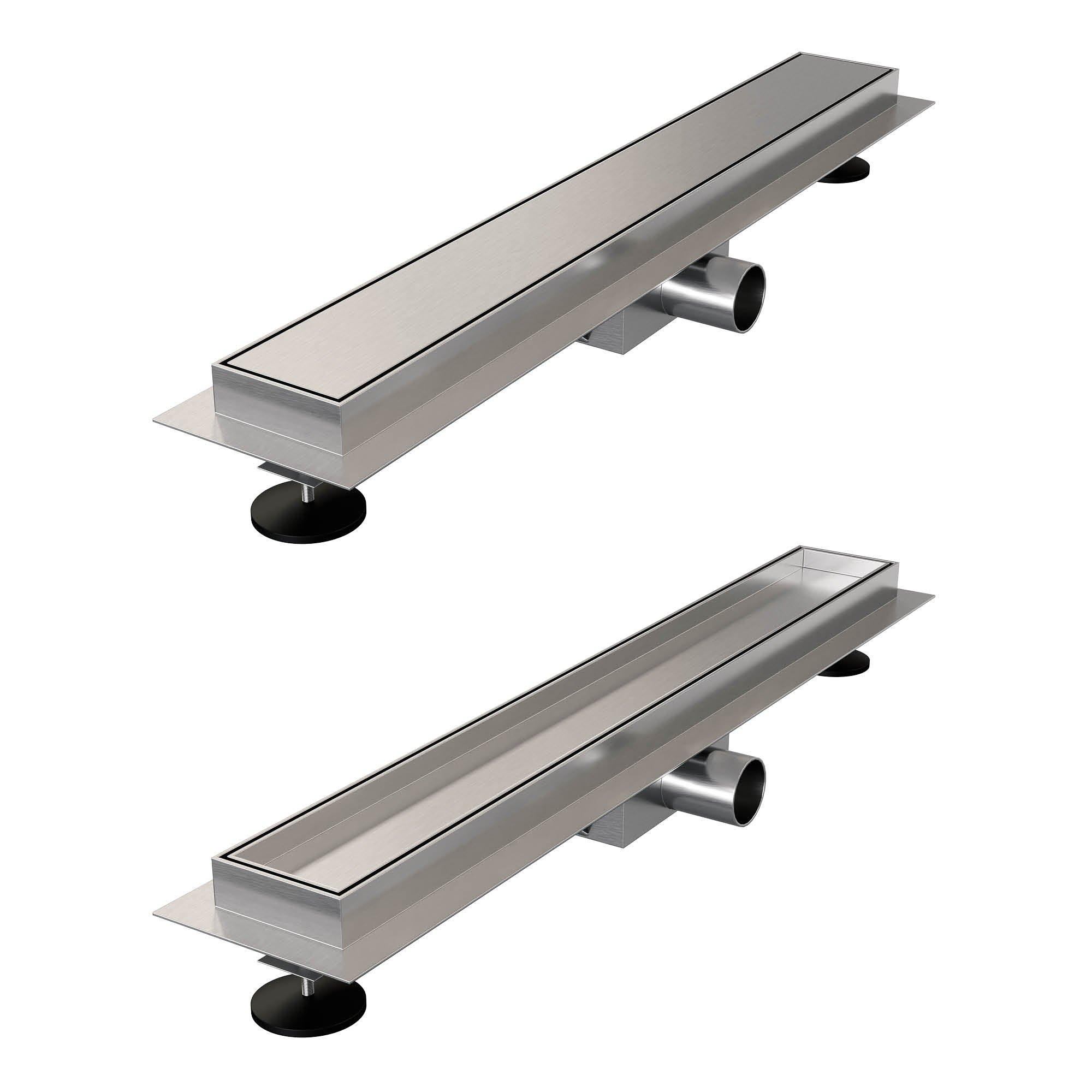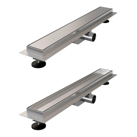 Brauer Douchegoot - 50x7x6.7cm - ondiepe vloerflens - zijuitloop - tegelinlegrooster omkeerbaar - RVS
