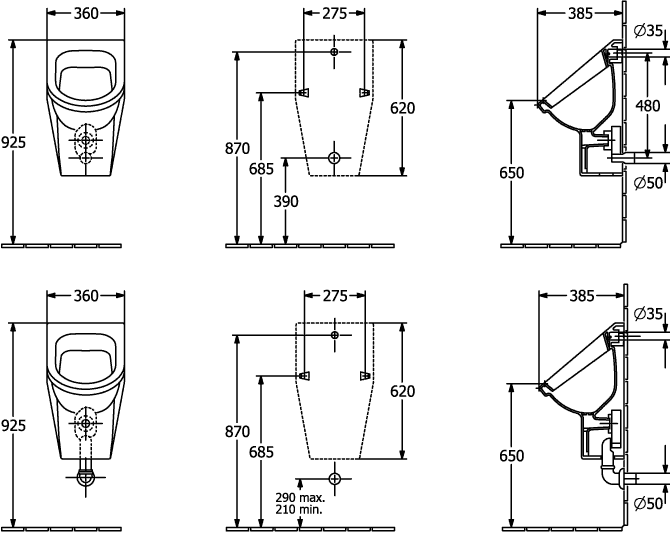Villeroy & Boch Architectura Urinoir (goot) H62xB35.5xD38.5cm Keramiek Wit